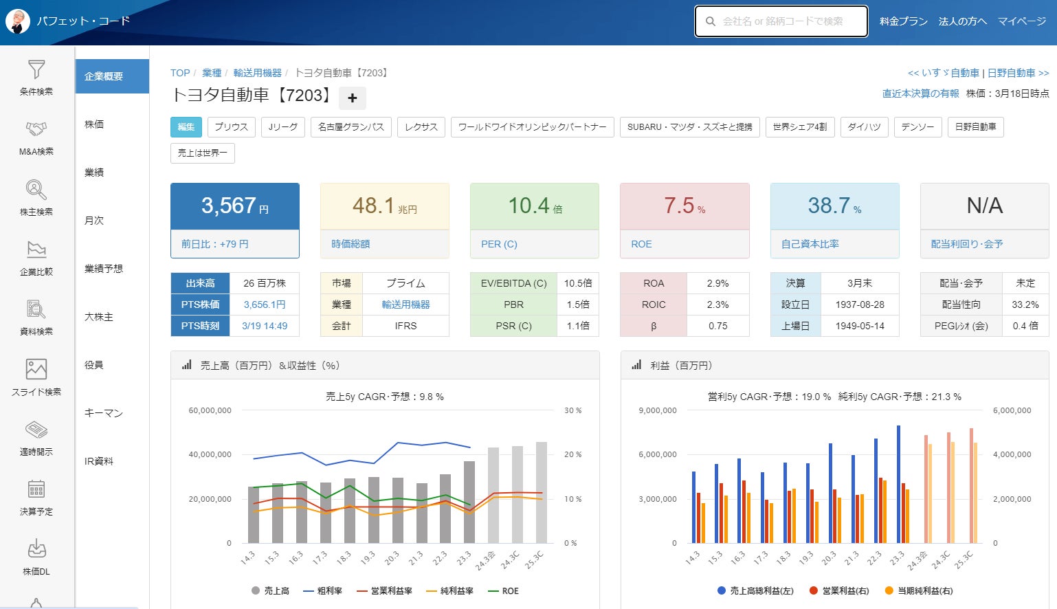 こうした取り組みなどが高く評価され、バフェット・コードは100万MAU(Monthly Active Users)を突破したことをご報告いたします。これは企業分析ツールとしては異例の規模となります。ひとえに株式投資家のみならず、経営者や起業家、セールスパーソン、財務・経理、就職・転職活動者など、幅広い層に企業分析ツールを提供してきた結果と捉えております。もっとも、ビジネスパーソンの母数に鑑みるとまだまだ探鉱の余地が大きいと考えており、引き続き企業分析者にとって有益な価値提供を企画してまいります。