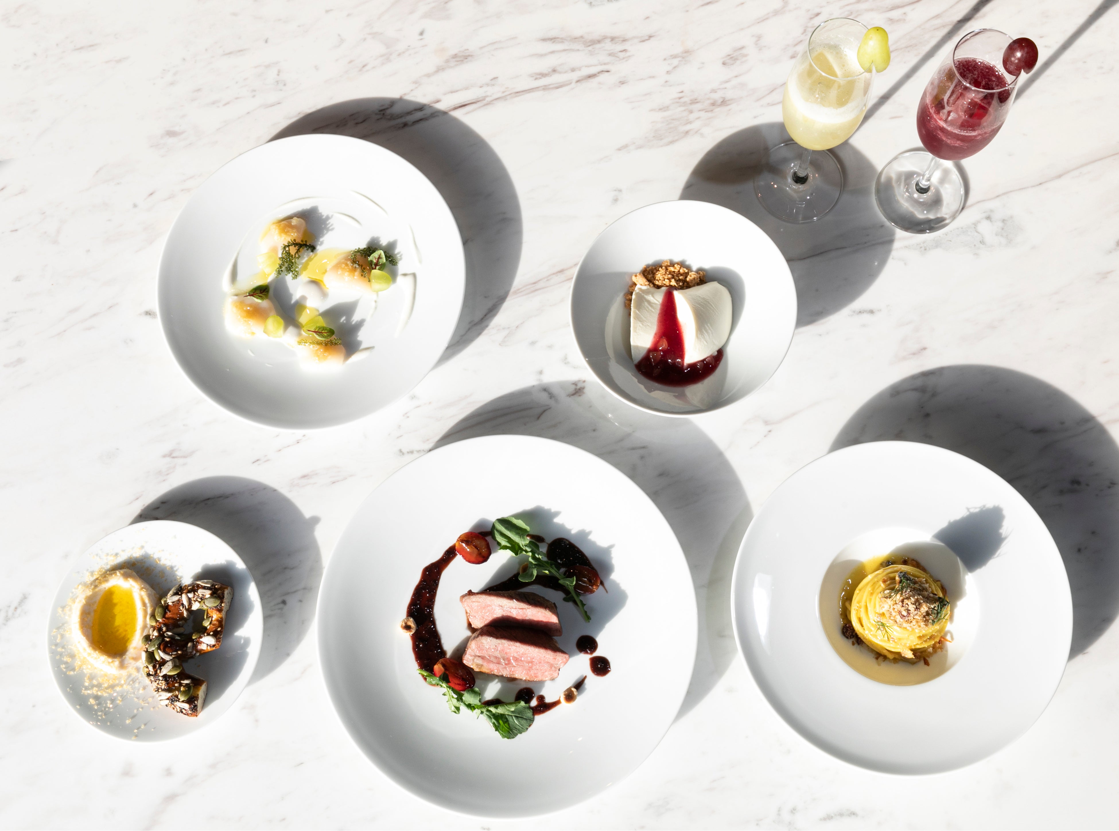 前菜 ホタテのカルパッチョ 白ブドウヨーグルトとエシャロットのヴィネグレット