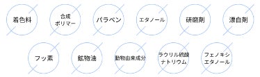 Dr.アパタイトの徹底的とも言える安心へのこだわりから、着色料、合成ポリマー、パラベン(防腐剤)、エタノール、研磨剤、漂白剤、フッ素、鉱物油、動物由来成分、ラウリル硫酸ナトリウム、フェノキシエタノール不使用の無添加処方。
