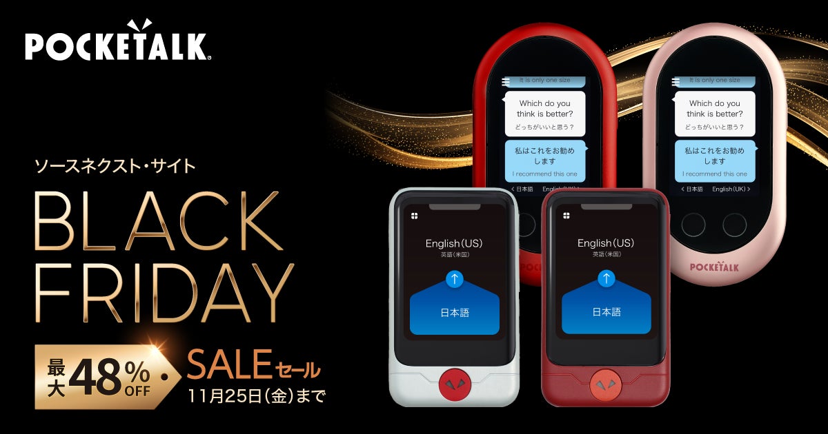 ポケトーク株式会社(本社:東京都港区、代表取締役社長:松田 憲幸)は、11月17日(木)から11月25日(金)までの9日間、弊社サイト上で「BLACK FRIDAY SALE」を開催いたします。