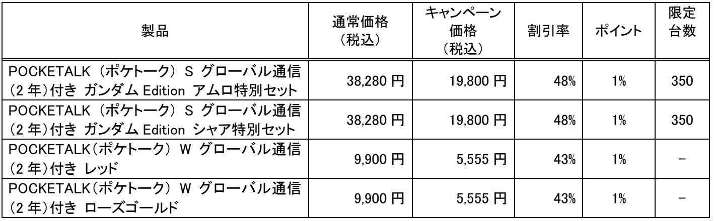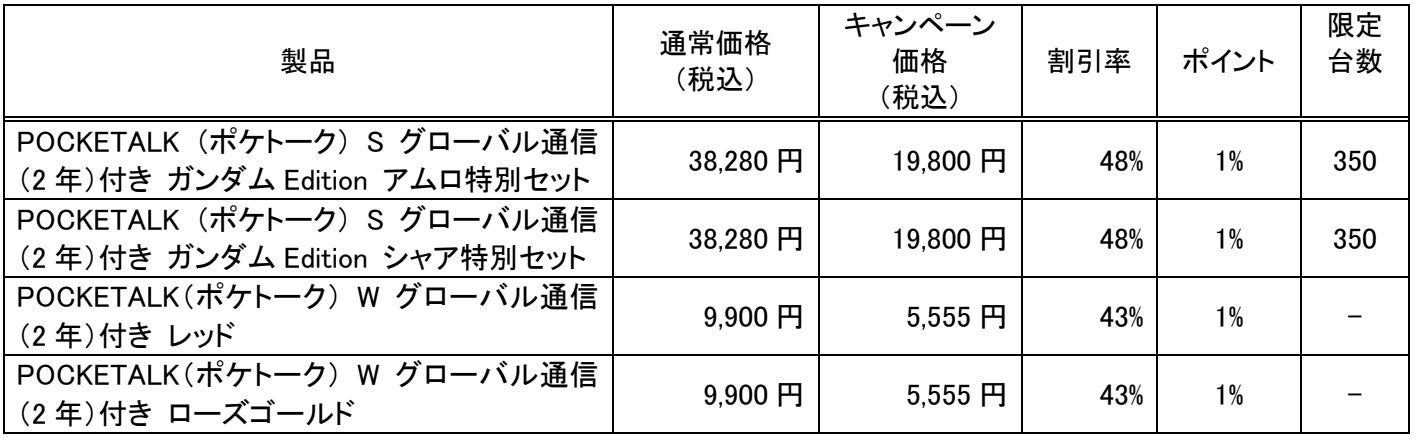 本セールでは、AI通訳機「ポケトークⓇ S」のガンダムEditionを48%割引の特別価格で提供します。