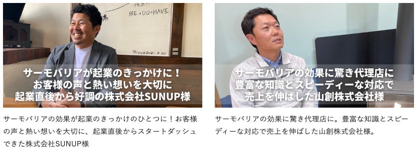 また、代理店として動いてくださっている企業の方からも「代理店になったことで売上が上がった!」「サーモバリアが起業のきっかけとなった!」といった声もいただいております。