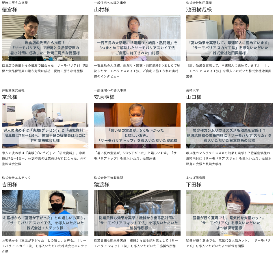 サーモバリアを工場や自宅に施工された方に、お客様インタビューを行なっております。