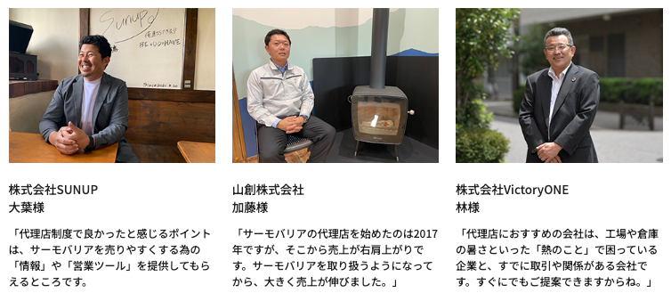 サーモバリアの代理店として活躍してくださっている3社からのコメント
