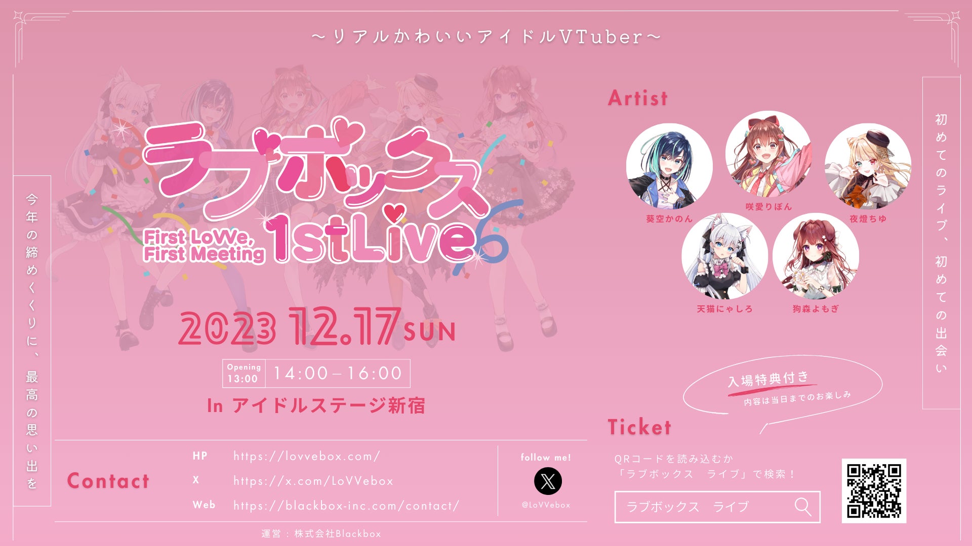 リアルかわいいアイドルVTuberグループ『ラブボックス』が12月17日(日曜日)にアイドルステージ新宿でリアルライブを開催!