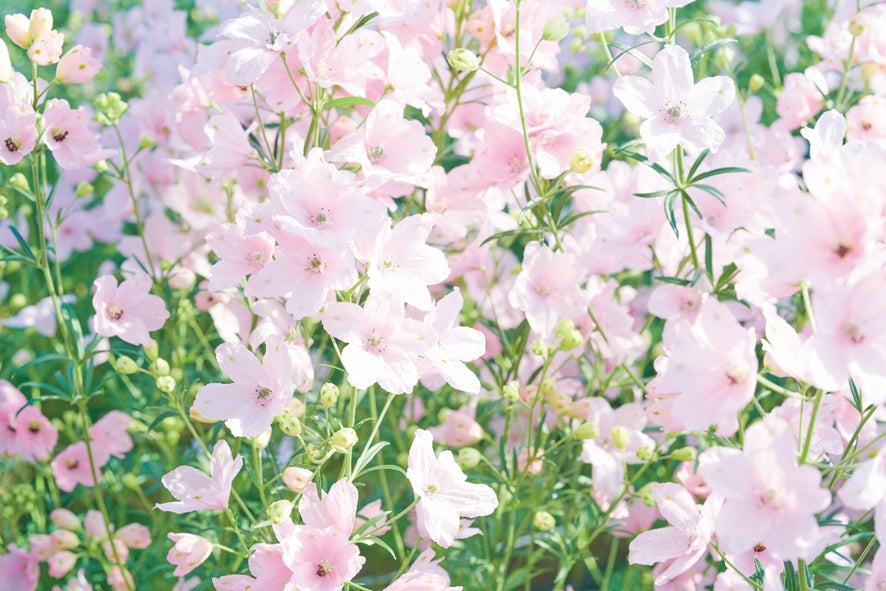 ・ 青色系が一般的なデルフィニウムをピンク色の花に品種改良