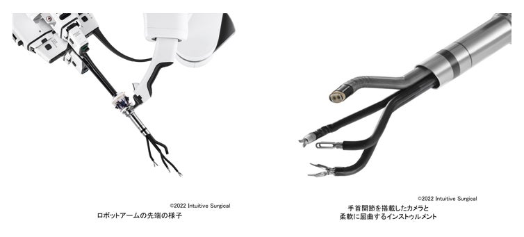 - ロボットアームに取り付けられた直径2.5cmのカニューラと呼ばれる筒から、カメラ(内視鏡)と3本のインストゥルメント(専用鉗子)を体腔内に挿入して手術を行う