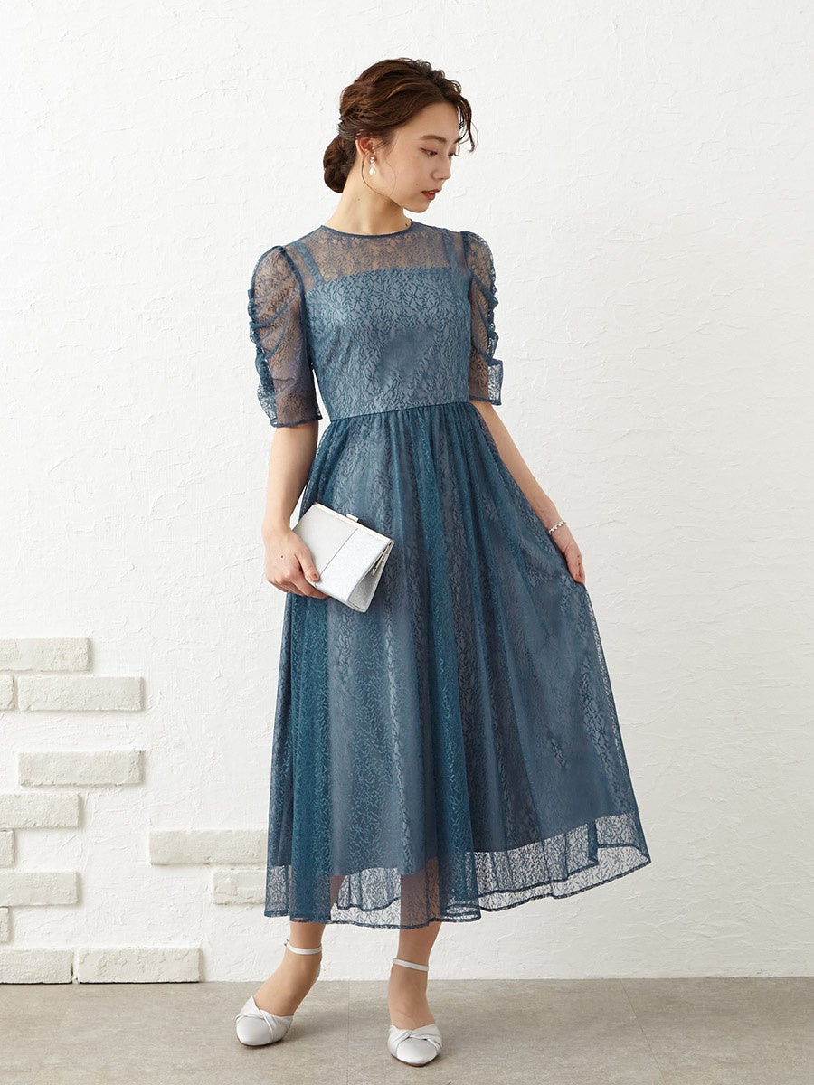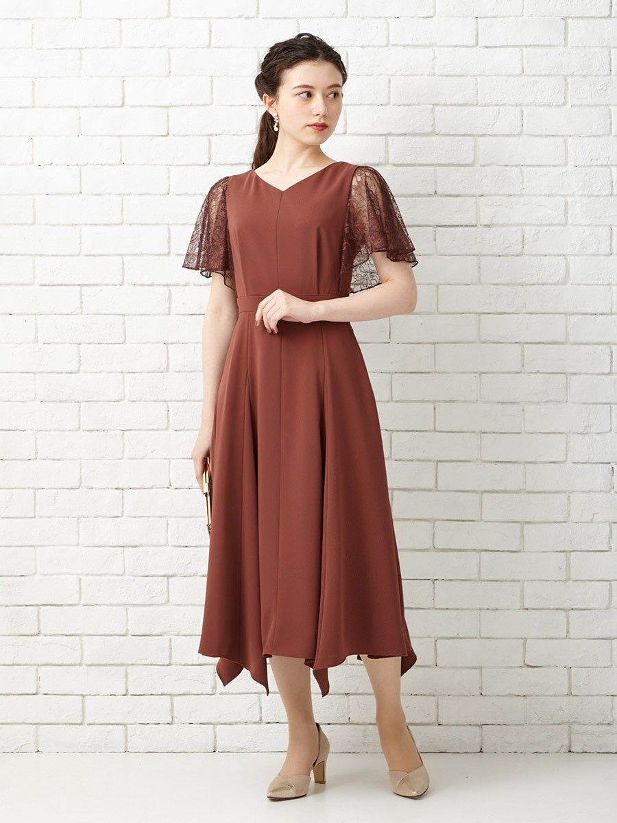 イレギュラーヘムラインとレーススリーブが、動くたびに目を惹くデザイン。