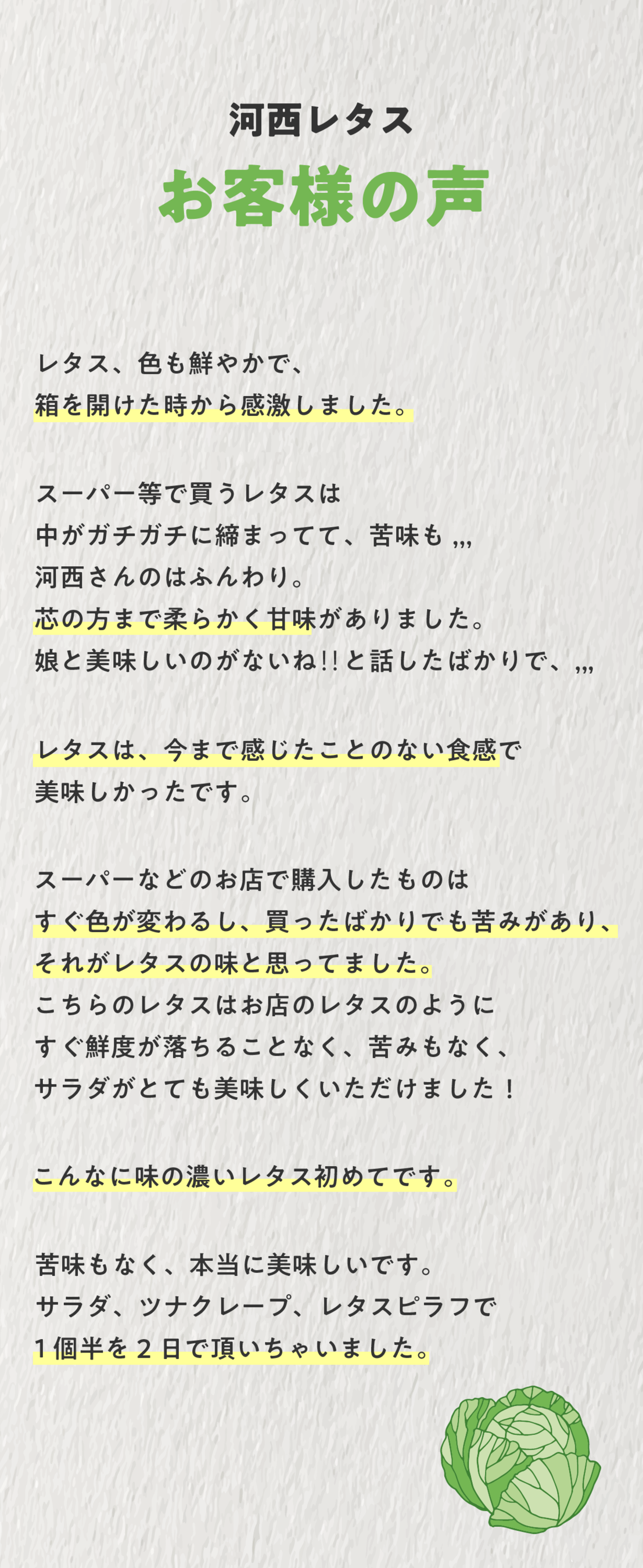 そして、レタスってこんなにも美味しいんだという驚きと感動を味わって欲しい。