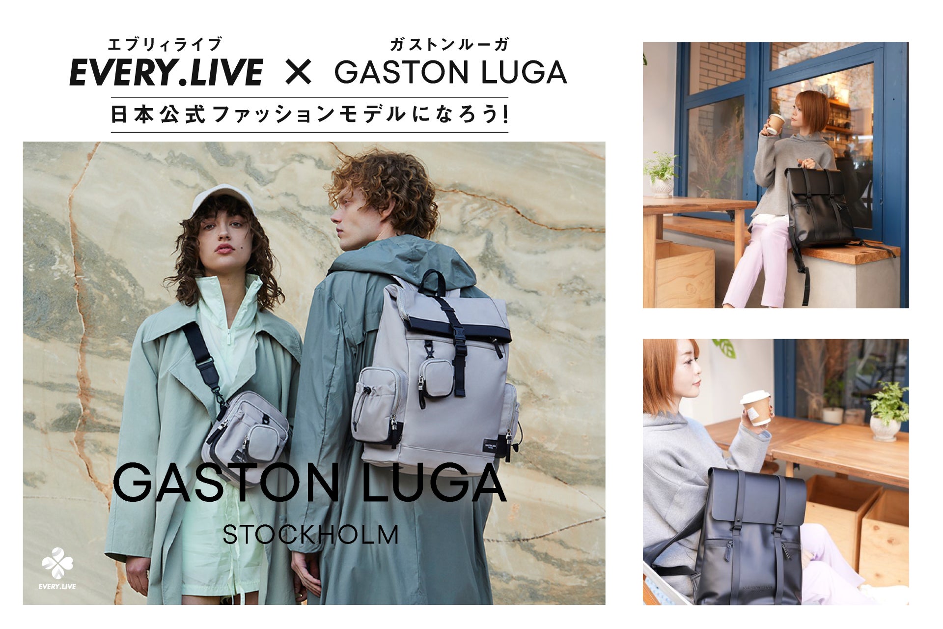 ライブ配信アプリ「EVERY .LIVE」スウェーデンのバックパックブランド「Gaston Luga」とのコラボイベントで、日本公式モデル就任&CM出演決定!