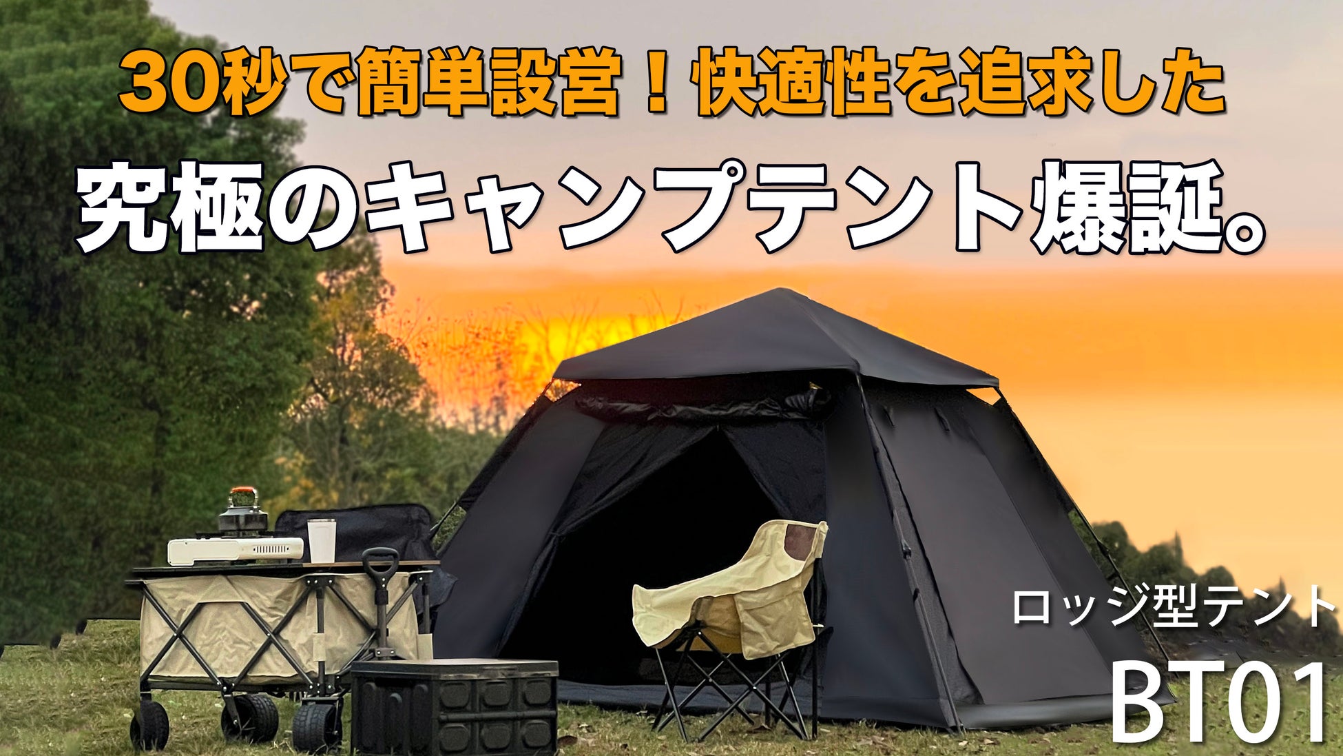 【30秒で簡単設置!】快適性を追求したロッジ型キャンプテント「BT01」がMakuakeにて先行販売開始!