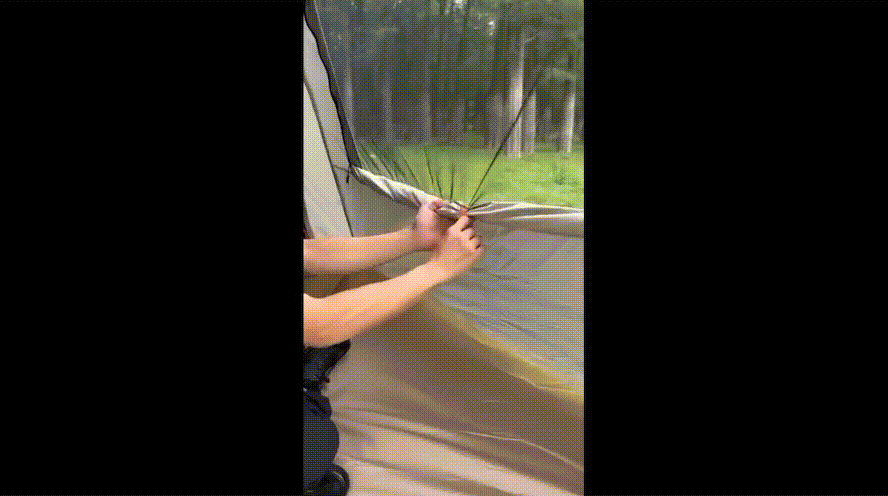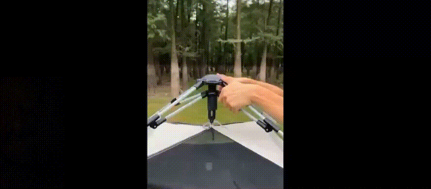 テントはすぐに広がります。足を広げた後、ペグを打てば基本的には完成です!