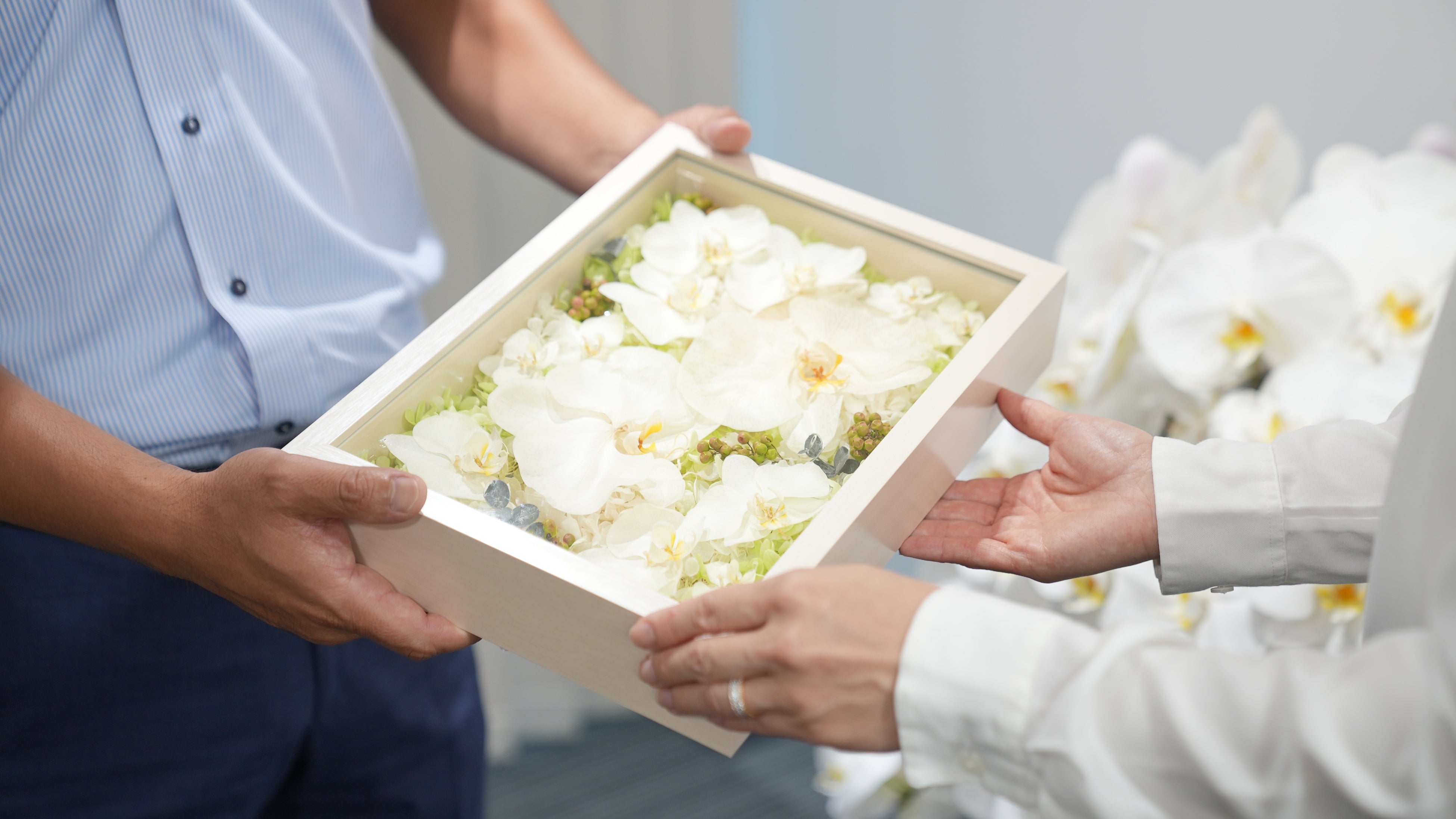 実際の生花よりも長期間にわたって華やかな状態で鑑賞していただける加工となっています。