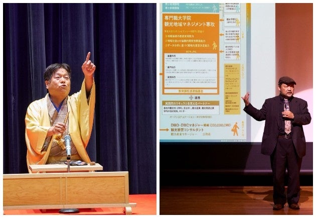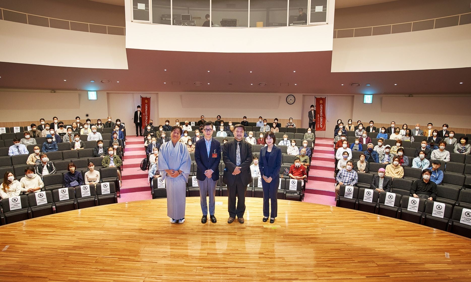 感謝祭では、進行役に和歌山放送の中川智美アナウンサーを迎え、和歌山県在住の落語家である桂枝曾丸(しそまる)さん、和歌山大学観光学部教授で地域プロデュースと観光映像が専門の木川剛志さんをゲストに、落語の披露やトークセッション、パネルディスカッションを行いました。