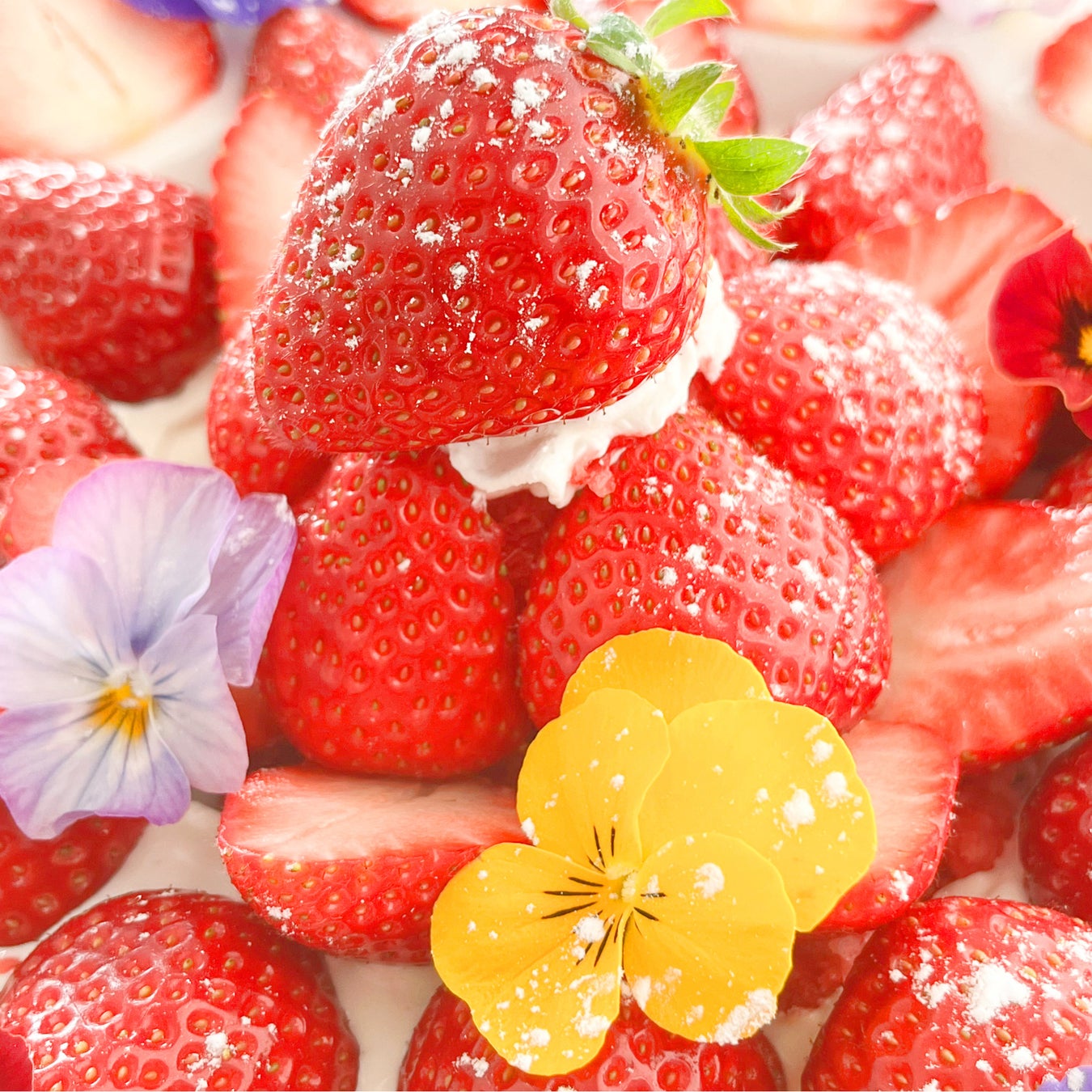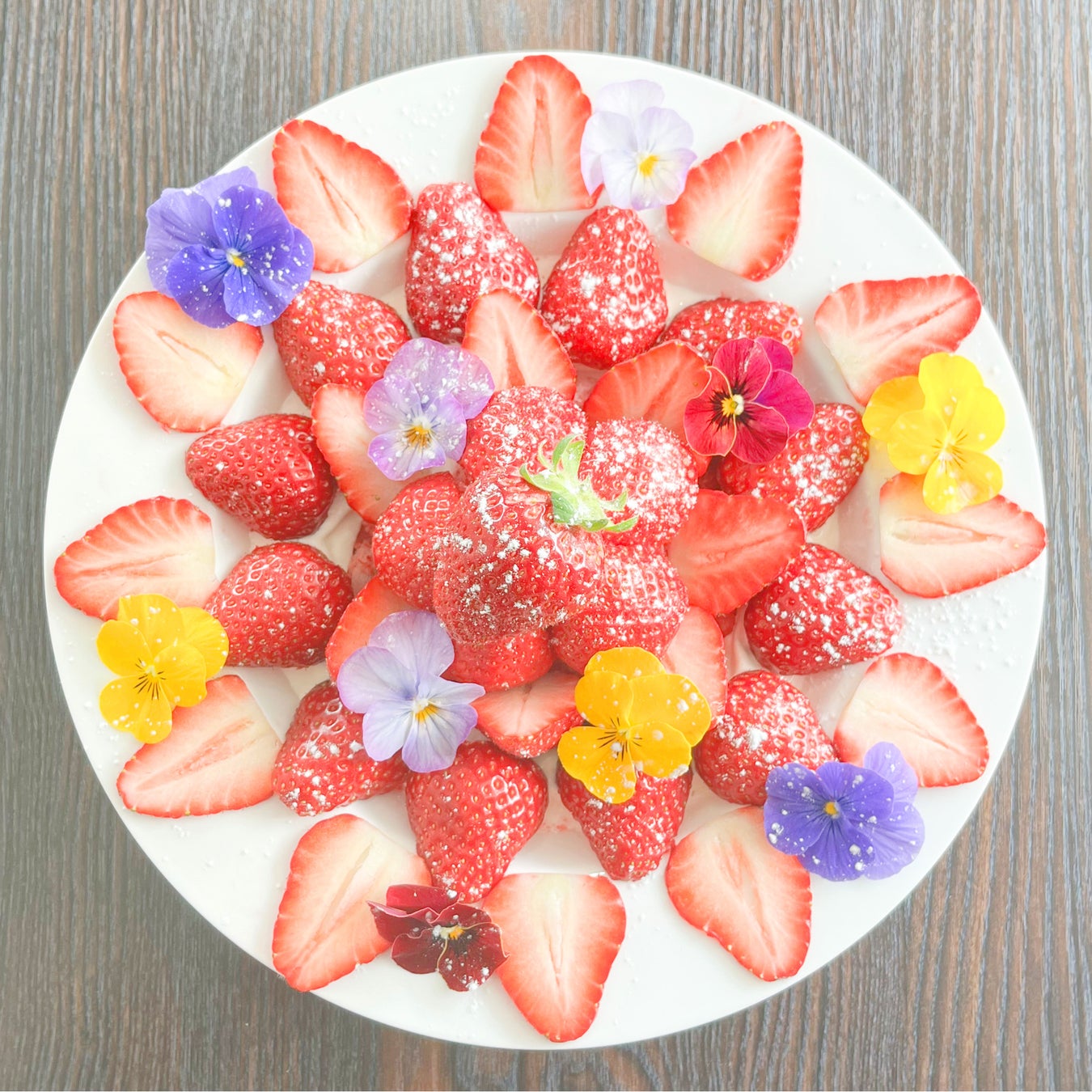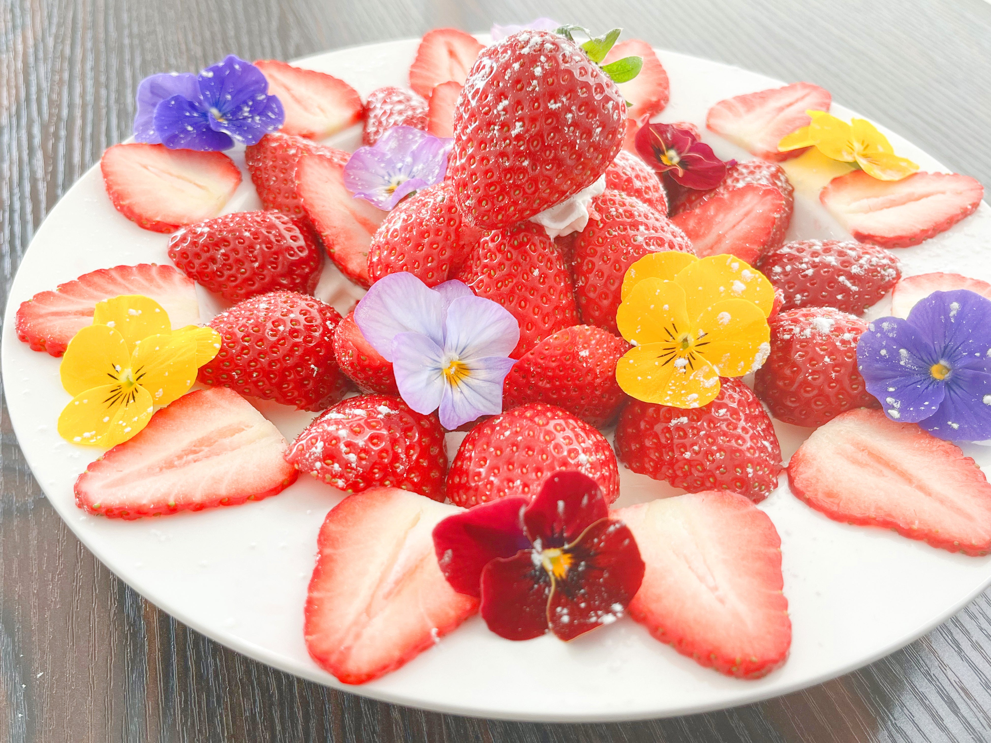 春満開!朝採りいちご×エディブルフラワーを使用した「朝採りいちごの花畑かき氷」