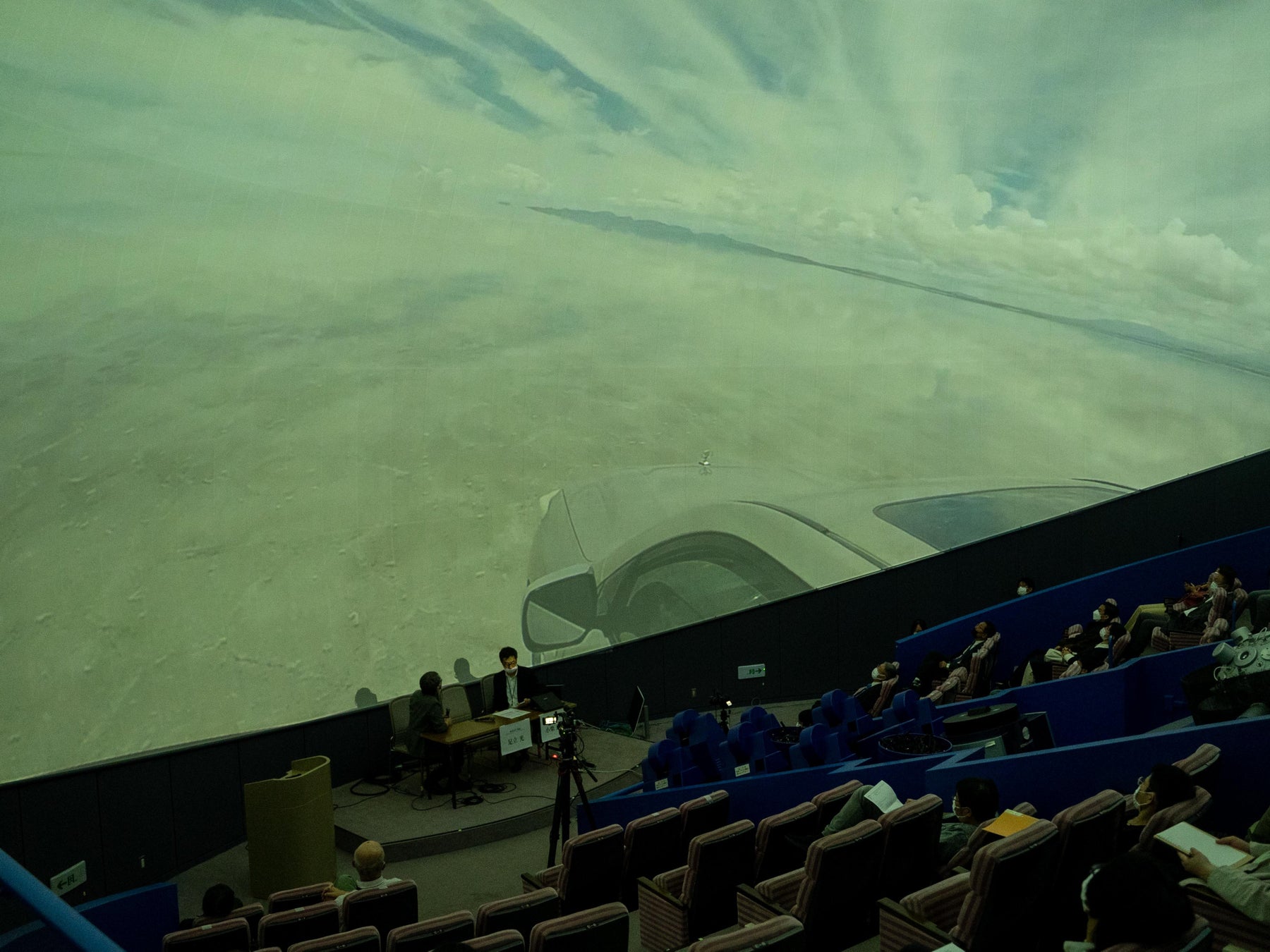 (ウユニ塩湖をドライブするVR映像をドームスクリーンに上映)