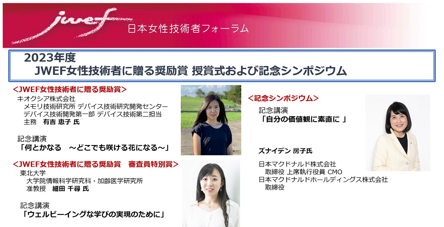 2023年度 JWEF女性技術者に贈る奨励賞 授賞式および記念シンポジウム