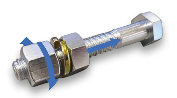 締結: ・外側ナットを締めれば、内側ナットも従動するためワンアクションで締結可能です。