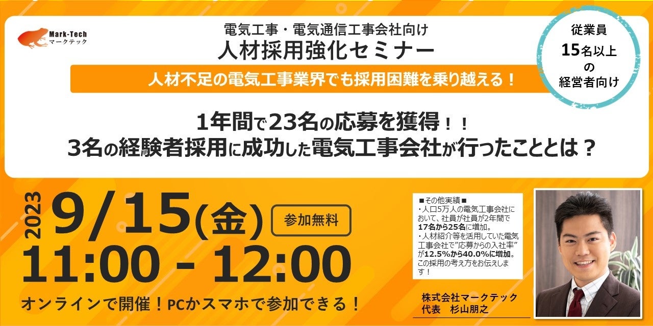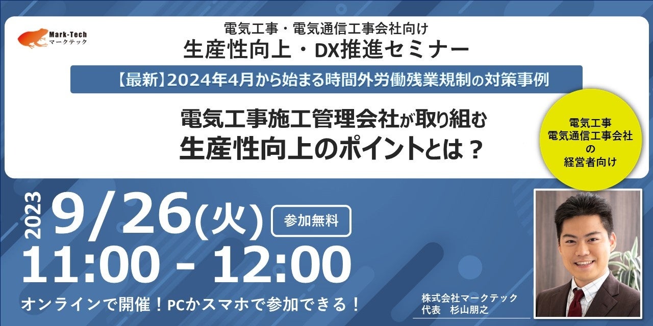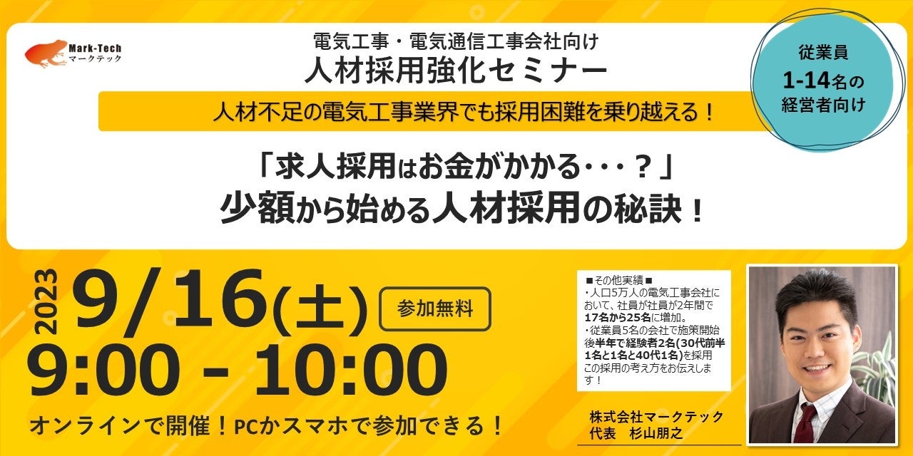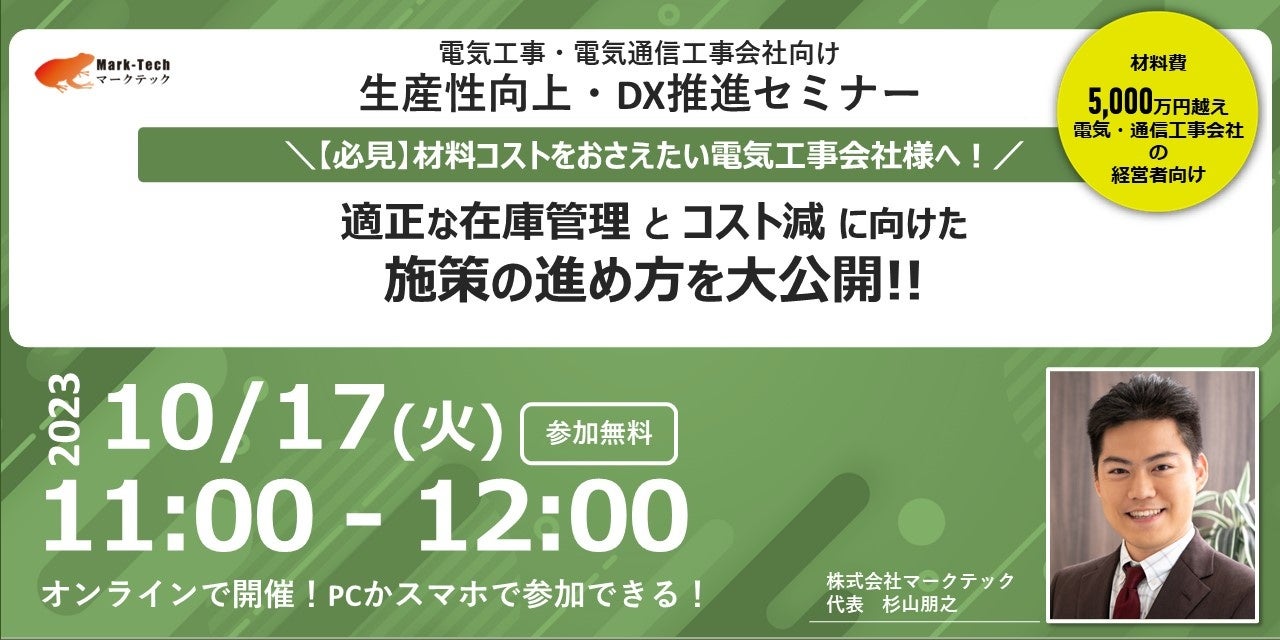 株式会社マークテック、電気工事会社向けの人材採用強化、生産性向上、材料コスト削減セミナーを9月15日から開催