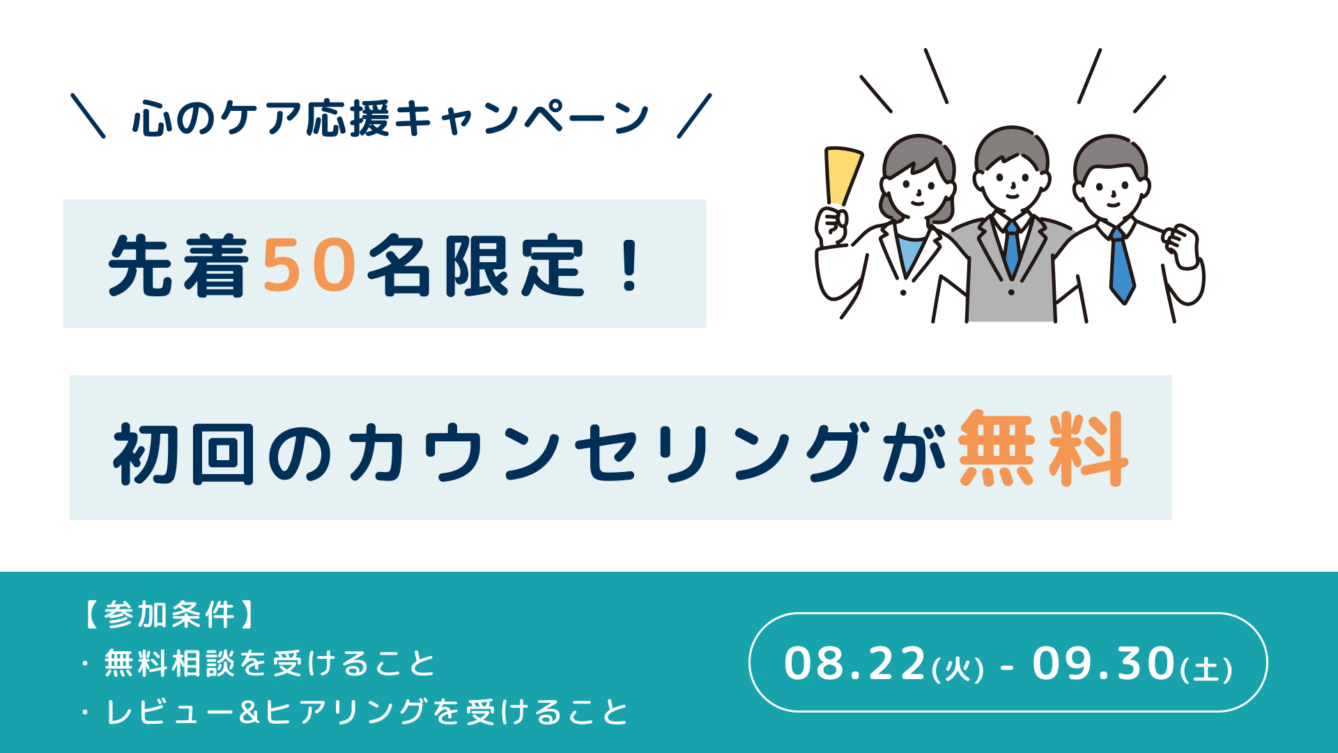 突破を記念し、心のケアをもっと身近に感じてほしいという思いから、初回カウンセリングを先着50名様に無料で提供するキャンペーンを開始いたします。