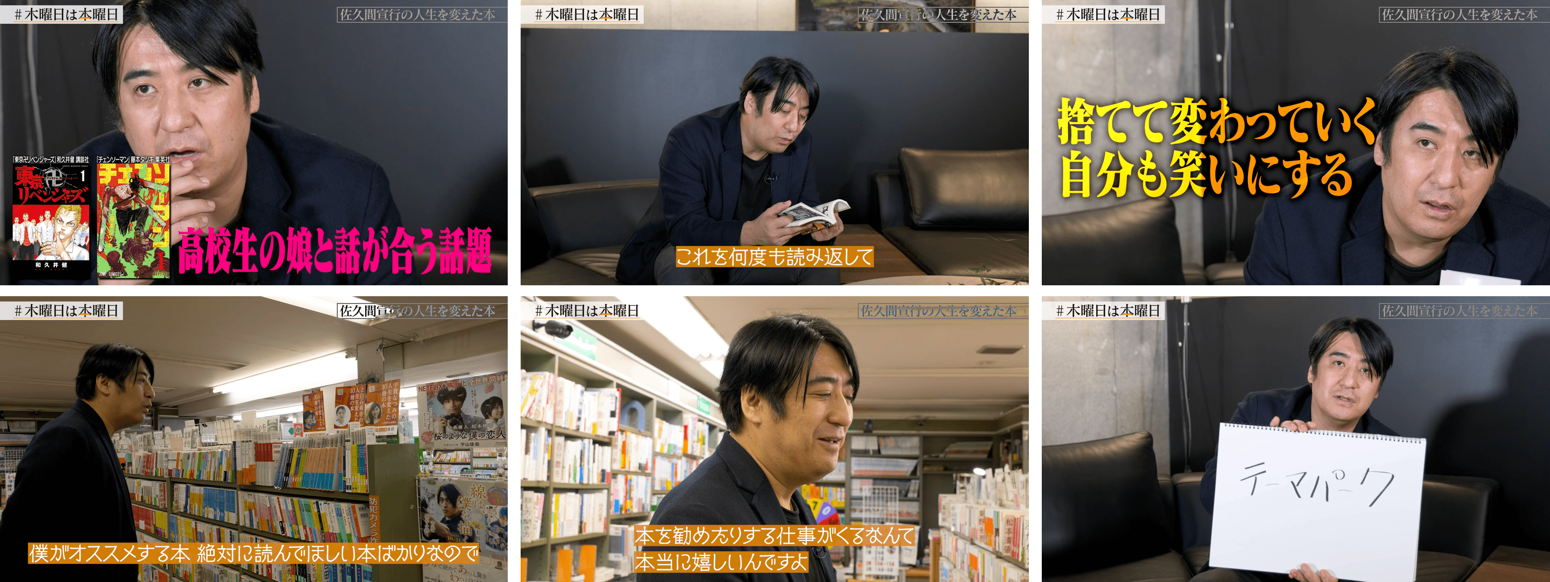 東京都書店商業組合(所在地:東京都千代田区、理事長:矢幡 秀治)は、本屋へ足を運ぶ習慣づくりを目指して始動したプロジェクト「#木曜日は本曜日」の第5弾としてテレビプロデューサーの佐久間宣行さんをゲストとして起用し、佐久間さんに出演いただいたインタビュー動画を特設サイトおよび東京都書店商業組合公式YouTubeチャンネル「東京の本屋さん~街に本屋があるということ~」にて本日11月3日(木)より公開いたします。さらに、「人生を変えた本」をテーマに佐久間さんに選書いただいた本を東京都書店商業組合に加盟する約180の書店にて販売し、購入特典の限定しおりを配布いたします。