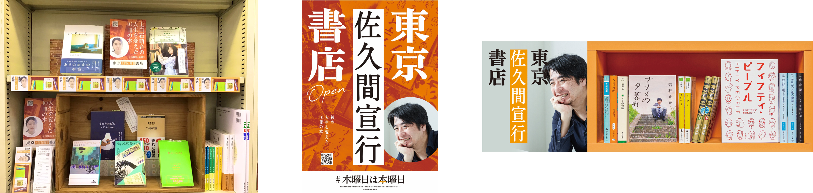 さらに、東京都書店商業組合に加盟する約180の書店にて佐久間さんの選書本を紹介・販売してまいります。店頭ポスターやのぼりを各店舗に設置するほか、購入特典として本棚をイメージした「#木曜日は本曜日 限定しおり」の店頭配布など、様々な取り組みを通じて本屋を盛り上げてまいります。