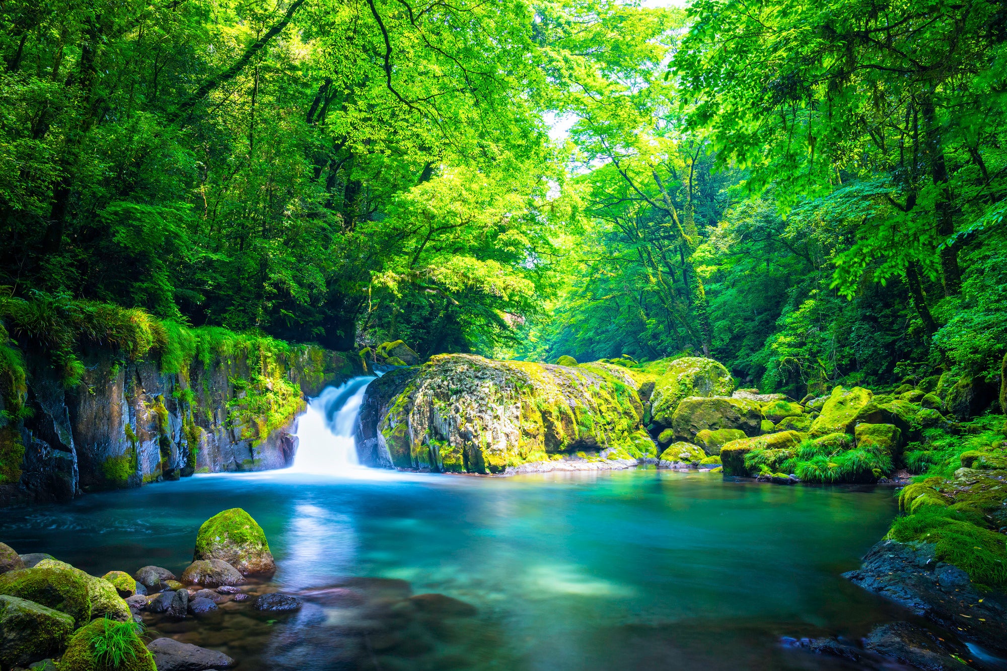 化粧品には沢山の水が含まれていることから、私たちは「水」に着目し、KACHIシリーズは 熊本東北部の阿蘇市の伏流水*を源流とした水を使用しています。