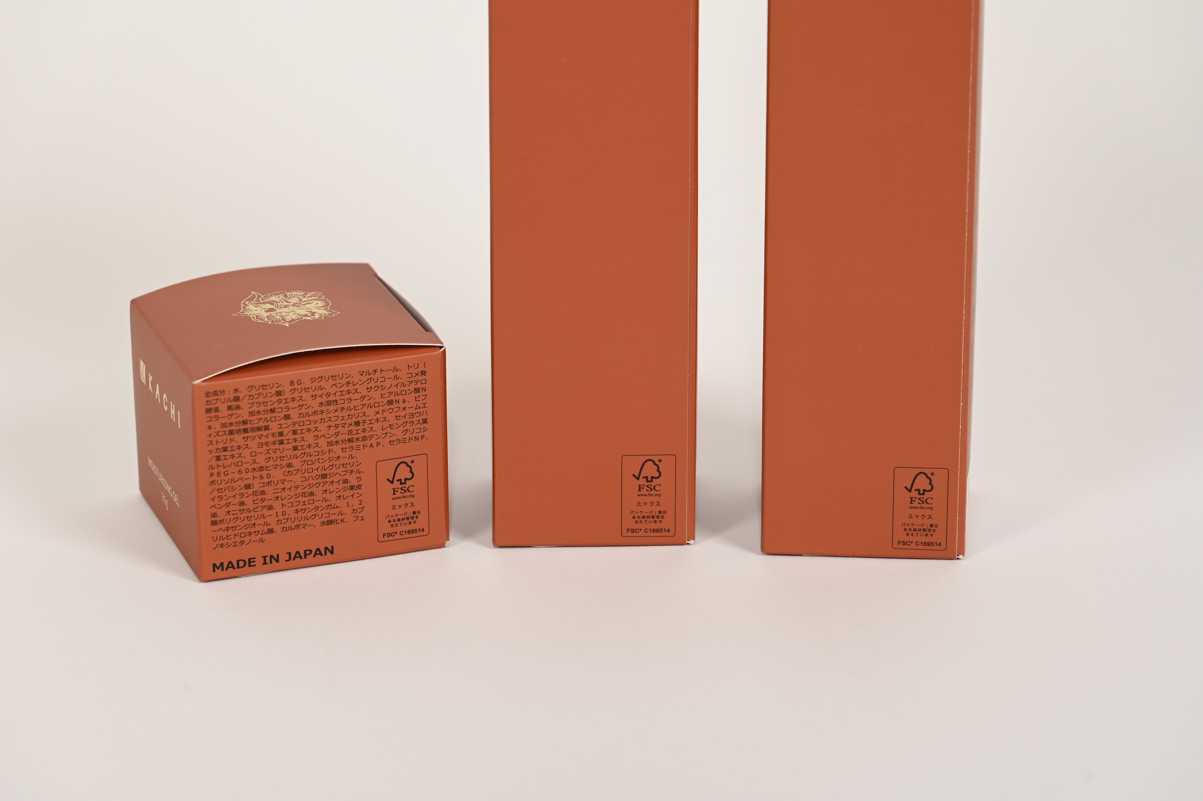 年齢、性別、国籍問わず多くの方に使っていただけるよう、インテリアになじむシンプルな美しさ、摺りガラスのような肌触りで環境負荷の極めて少ないバイオPET 容器、FSC 認証を取得した紙の外箱を採用しています。