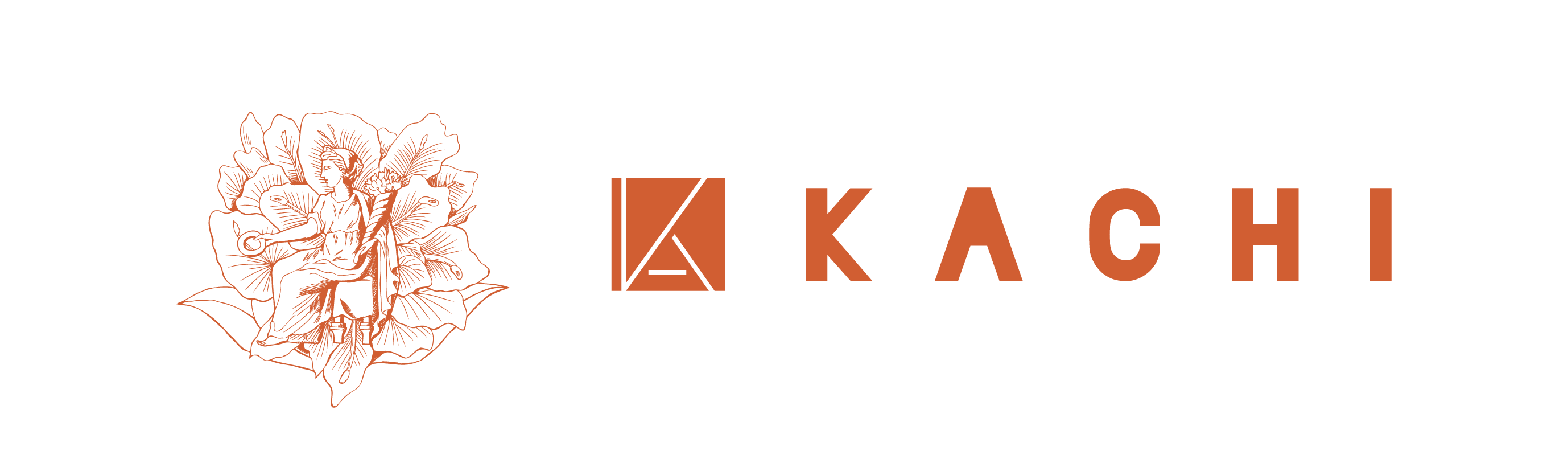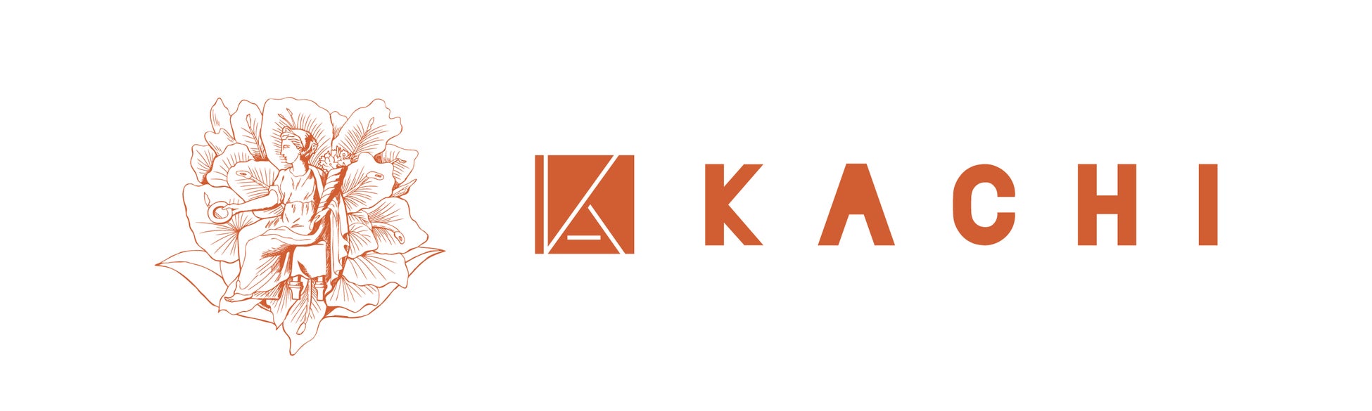 KACHI のロゴには、ジンジャーリリーの花の中に、輪を持っている女神がにこやかに座っている姿が描かれています。ジンジャーリリーの花言葉である「豊かな心」と豊かさの象徴である女神がモチーフになっています。 ”「豊かさ」をすべての万物に受け渡し、繋がりの輪を紡いでいく”という願いが込められています。