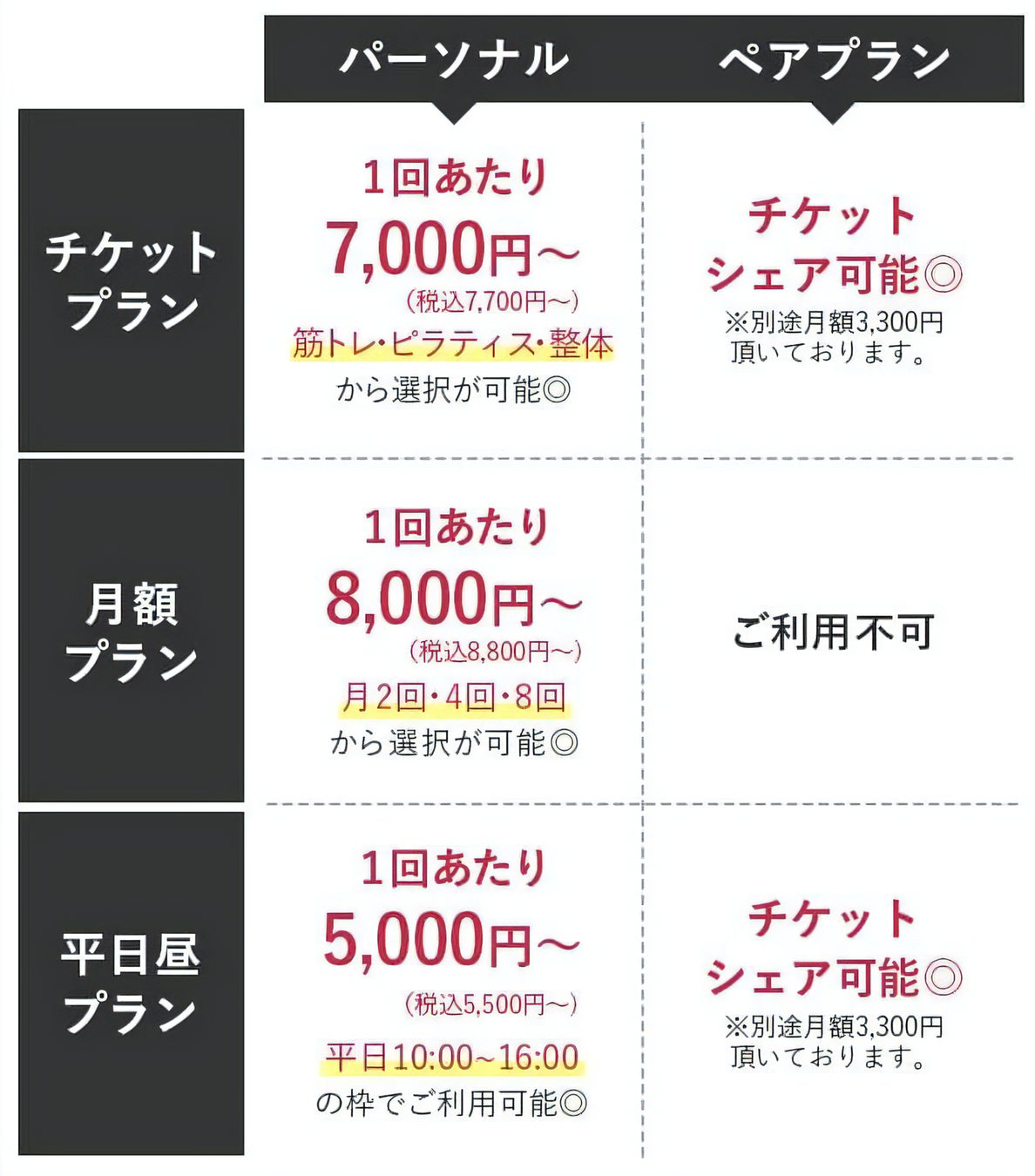 大手のパーソナルジムとは異なり、月額コースやお得な回数券のご用意がございます。