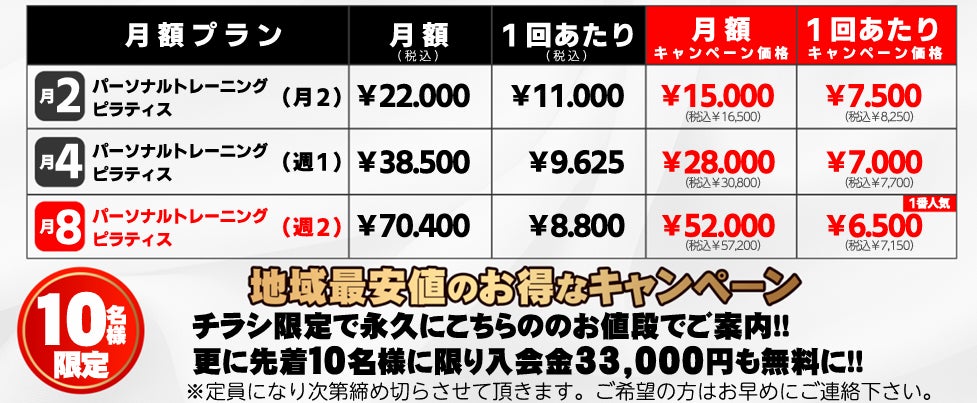 1次募集(先着10名様)限定で永久に割引価格に☆
