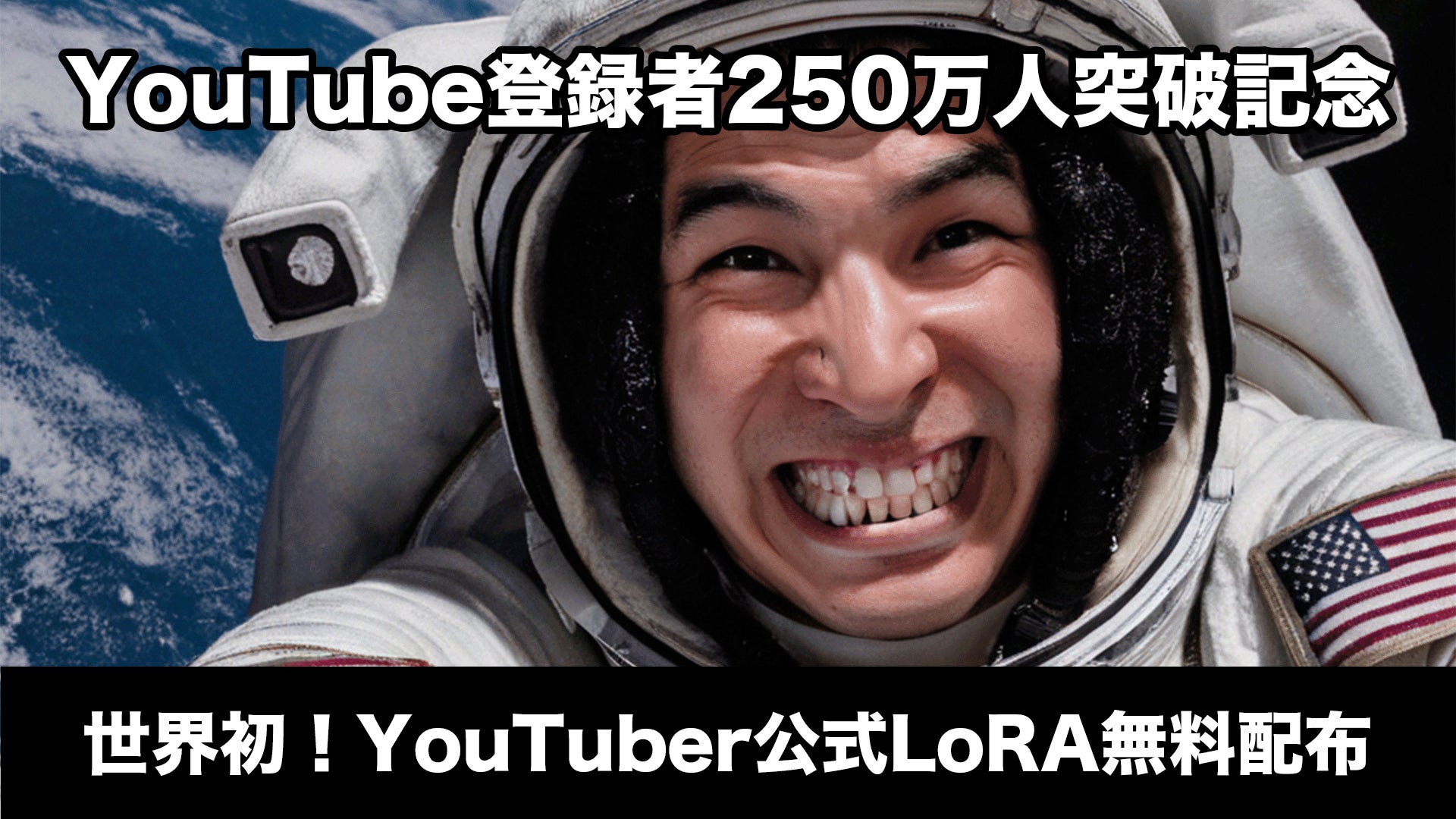 今年の1月1日からYouTubeを開始した弊社広報のドレッド山田のYouTubeの登録者が250万人を突破したことを記念して、SDXLのLoRAファイルの無料配布を実施します。