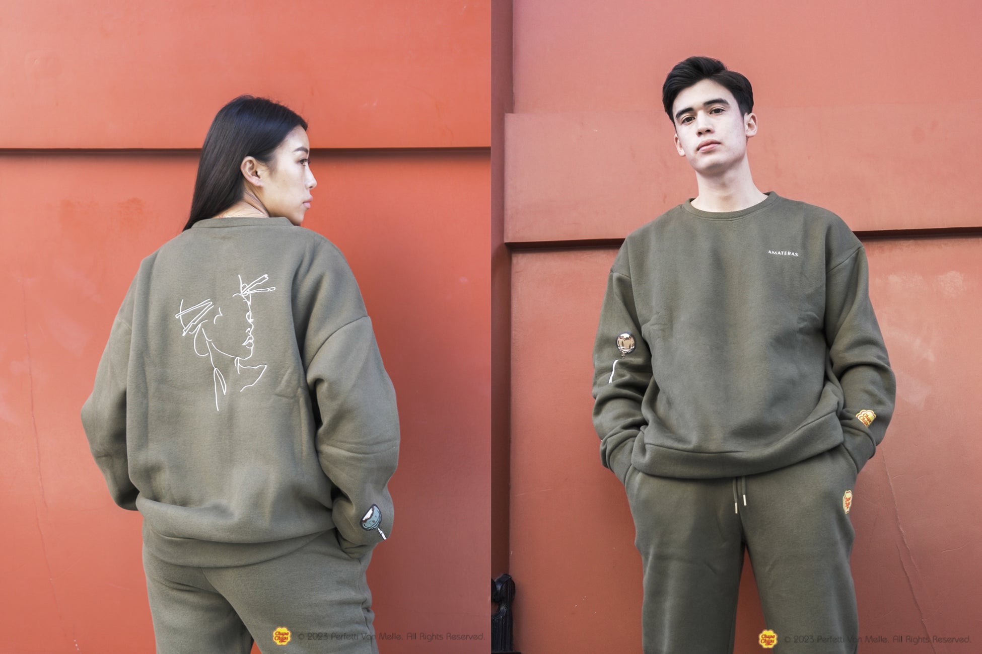 落ち着いたカーキのお色にワンポイントで入っているChupa Chupsのマークと胸元にはAMATERASの刺繍入り。後ろにはAMATERASの定番デザインである舞妓さんが描かれておりスタンダードなデザインはデイリーに使い回して着ることができます。