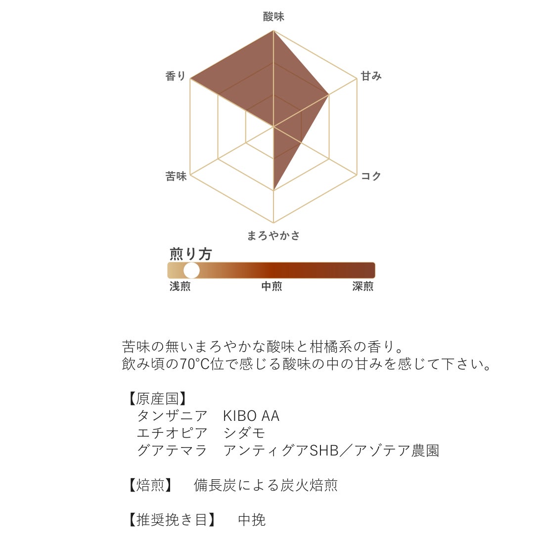 内容量:1袋200g入(豆・挽き) 生豆原産国:タンザニア、エチオピア、グアテマラ