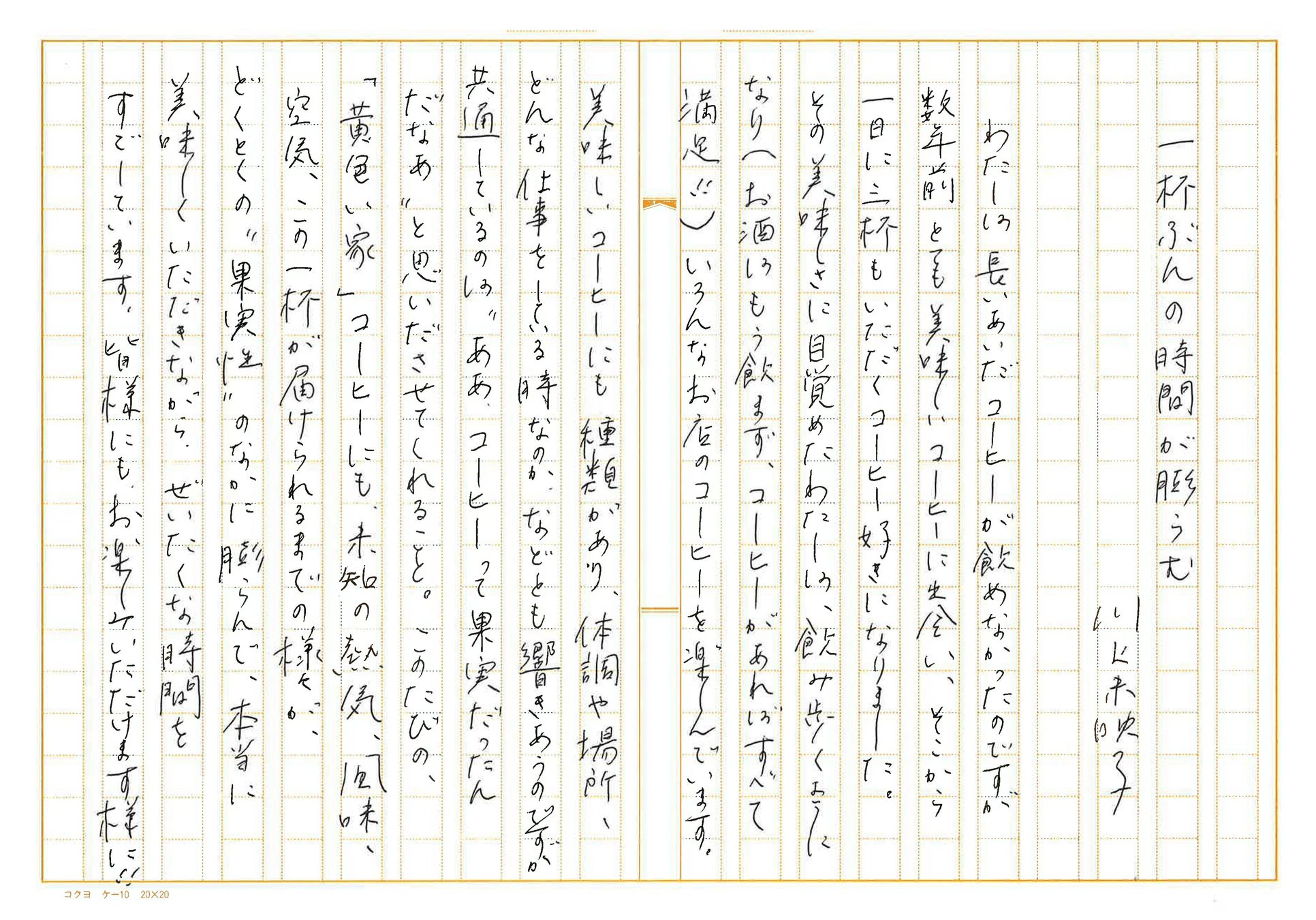 発売にあたり、川上さんから『黄色い家』ブレンドについて直筆メッセージ「一杯ぶんの時間が膨らむ」をいただきました!
