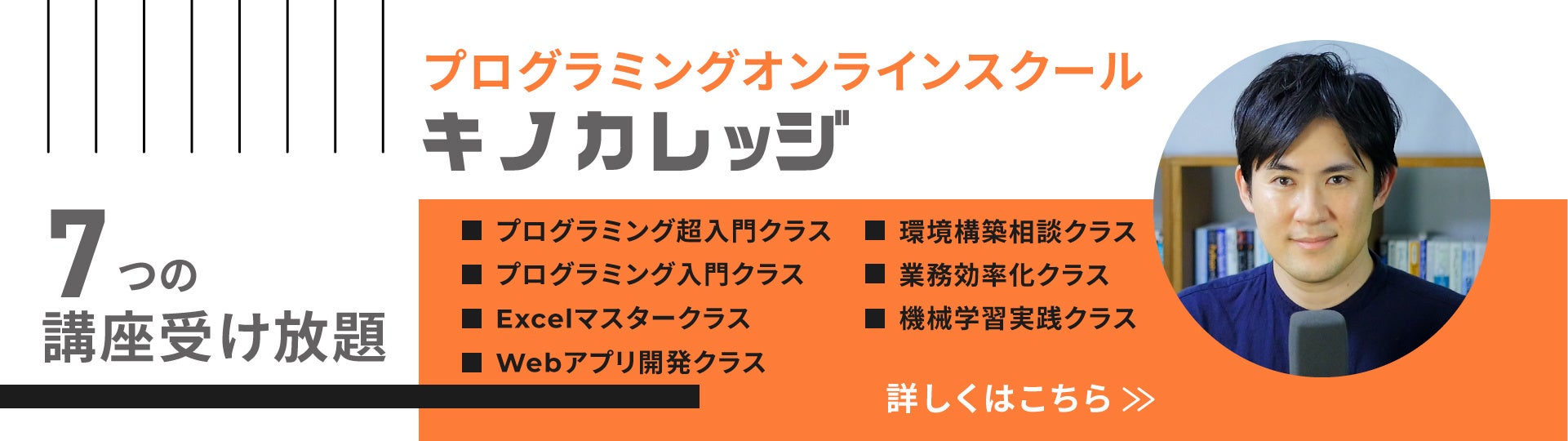 また、プログラミング超入門クラスは、業務効率化クラス・機械学習実践クラスといった、キノカレッジの実践的なクラスに進むために最低限必要なプログラミング知識を習得するクラスです。