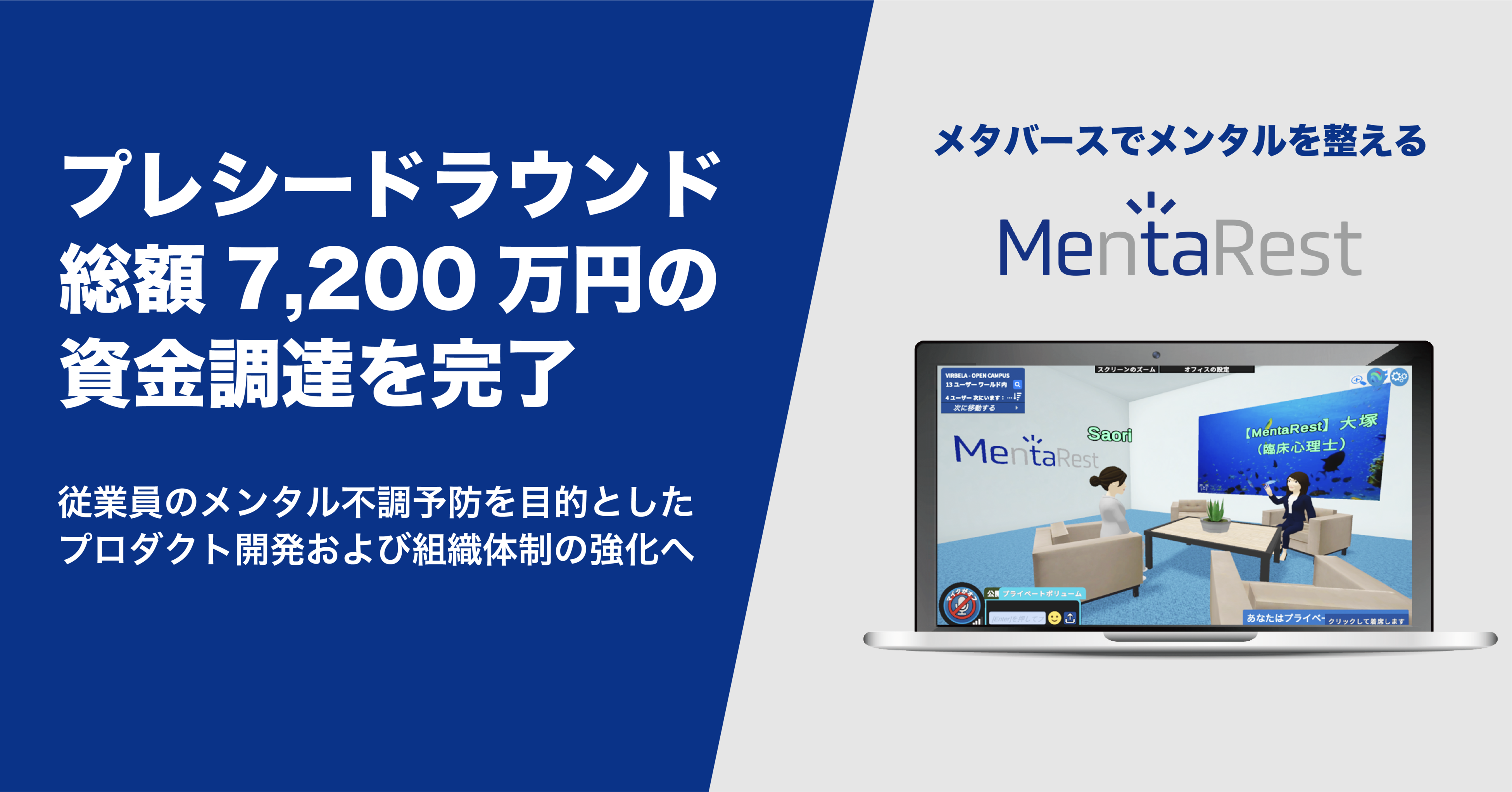 企業従業員のメンタルをアバターカウンセリングで整える『MentaRest』(メンタレスト)を提供する株式会社Flint(本社:東京都 渋谷区、代表取締役:飯野 航平、以下「当社」) は、 ユナイテッド株式会社などを引受先とする第三者割当増資を実施し、総額約7,200万円の資⾦調達をしたことをお知らせします。調達した資⾦は、プロダクト開発および組織体制の強化にあてる予定です。これにより、近年企業の人事部門が課題としている”従業員のメンタル管理”における課題を効率的に解決するだけでなく、企業従業員のメンタル不調予防施策の利用ハードルを下げ、より多くの企業従業員が思考や感情の整理ができ、安定したパフォーマンスの発揮につながる機会の提供に努めてまいります。