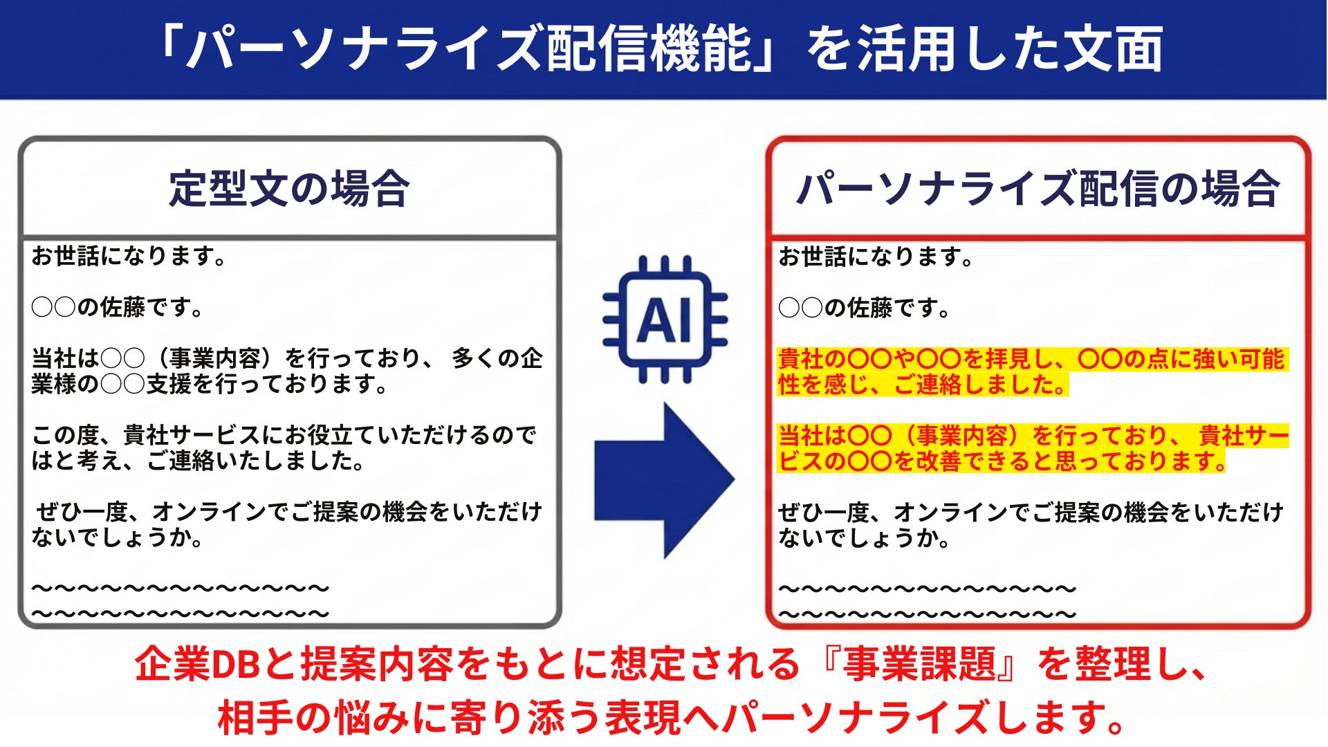 この強い想いから、当社が7年間で培ってきたセールスライティングの知見と、最新のAI技術を融合させ、本機能を開発いたしました。
