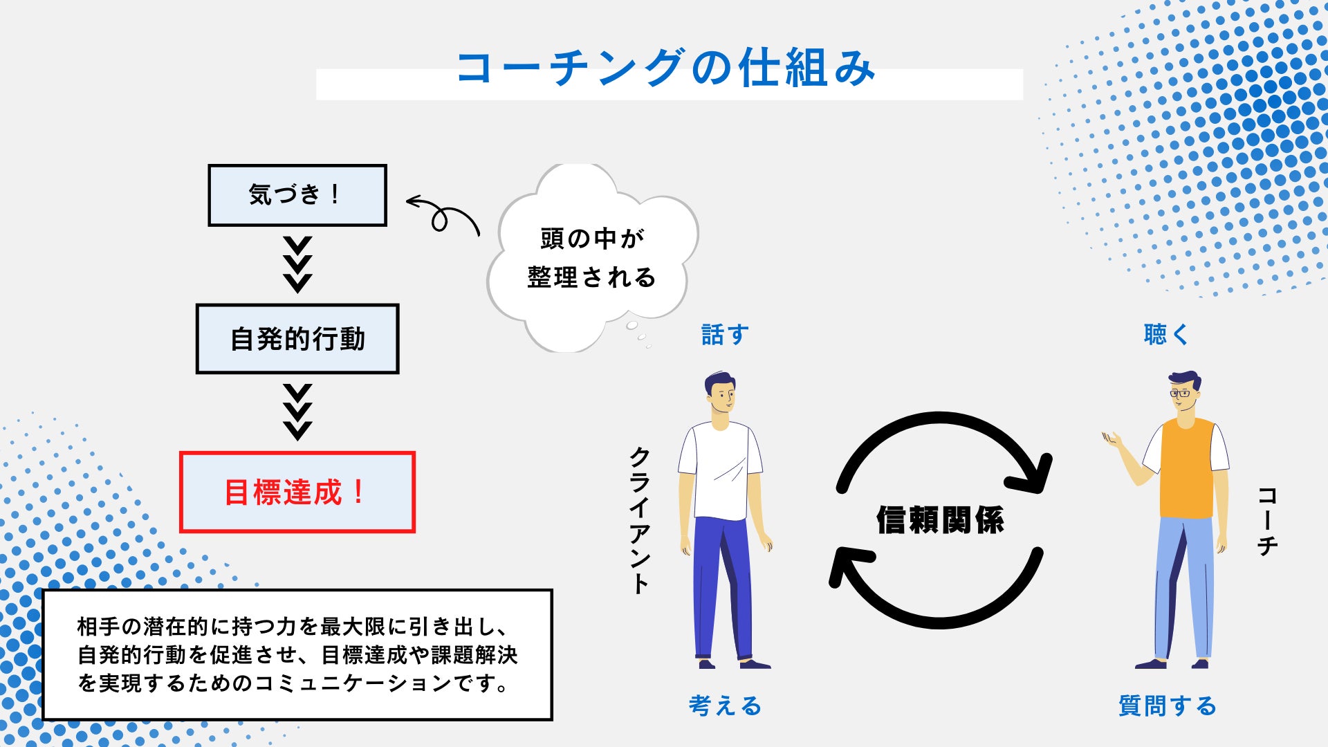 コーチングとは皆さまの話に耳を傾け、観察や質問を投げかけながら、自発的行動を促進するコミュニケーションの手法です。あなたの目標やその背景をセッションの中で改めて明確にし、行動への動機付けを行う手助けをします。(コーチングセッションでは、勉強や勉強方法を教えることはありません。)