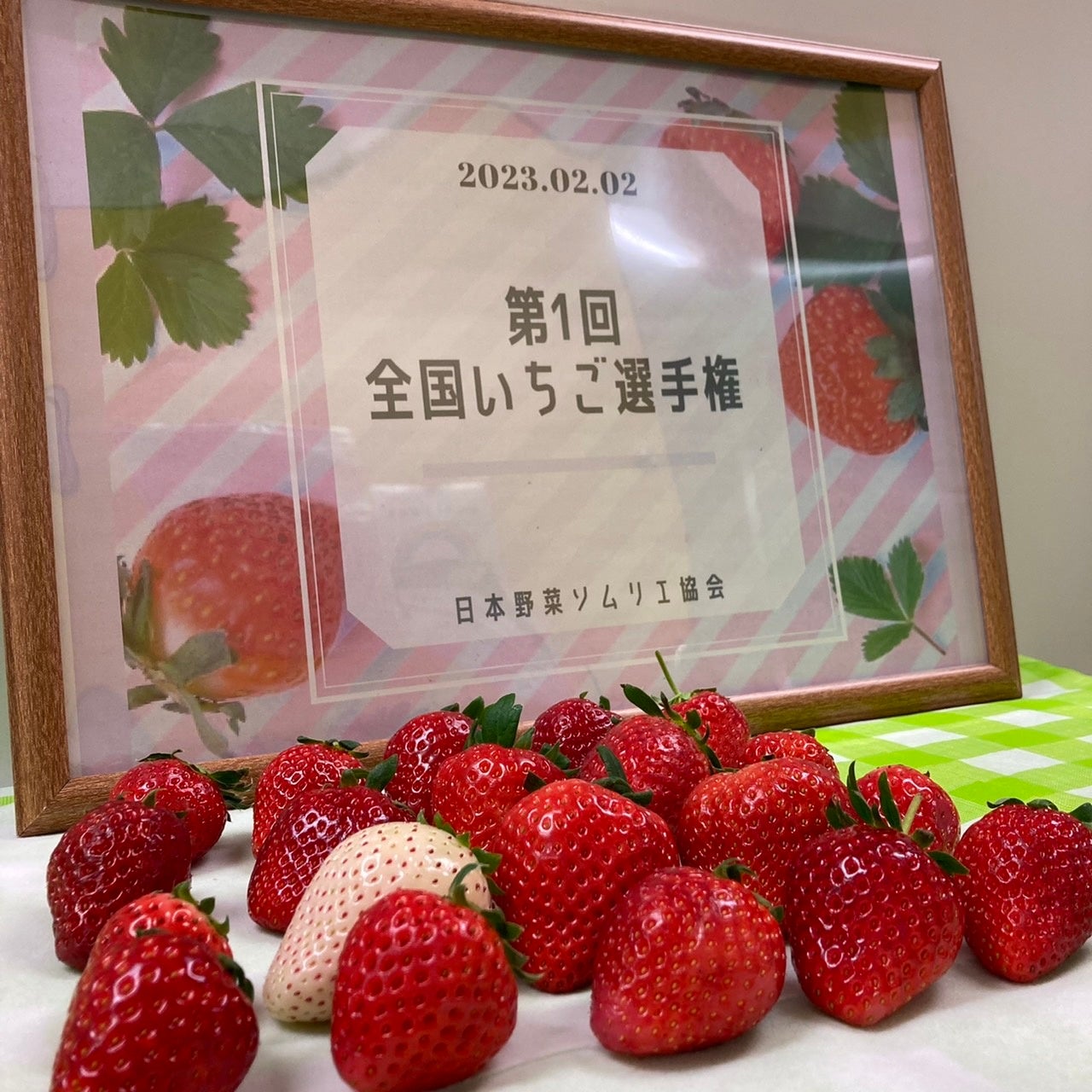 2023年2月2日(木)「第1回全国いちご選手権」が開催。最高金賞には、埼玉県春日部市のヒロファームの『あまりん』が選ばれました。全国各地の産地から届いた63品の『いちご』の中から、食のプロフェッショナルである野菜ソムリエが味覚評価で審査し各賞を決定しました。