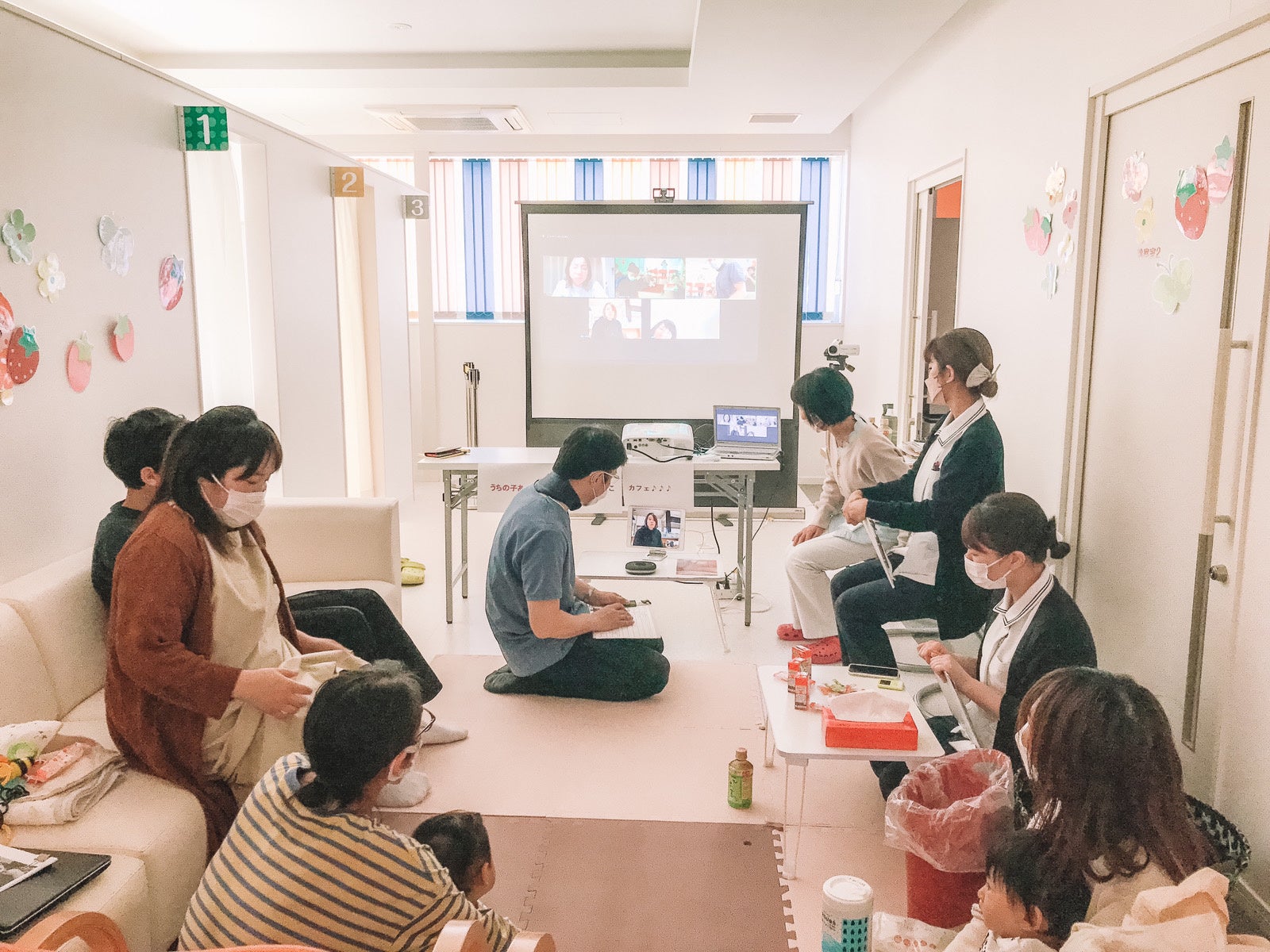 「にこカフェ」はあざに悩む家族が院内の手作りカフェに集合し、好きなドリンクを飲みながらさまざまな不安や疑問を共有しつつ自由に話し合えるアットホームな会です。オンライン参加も可能なので、遠方の方も気軽に参加OKです。