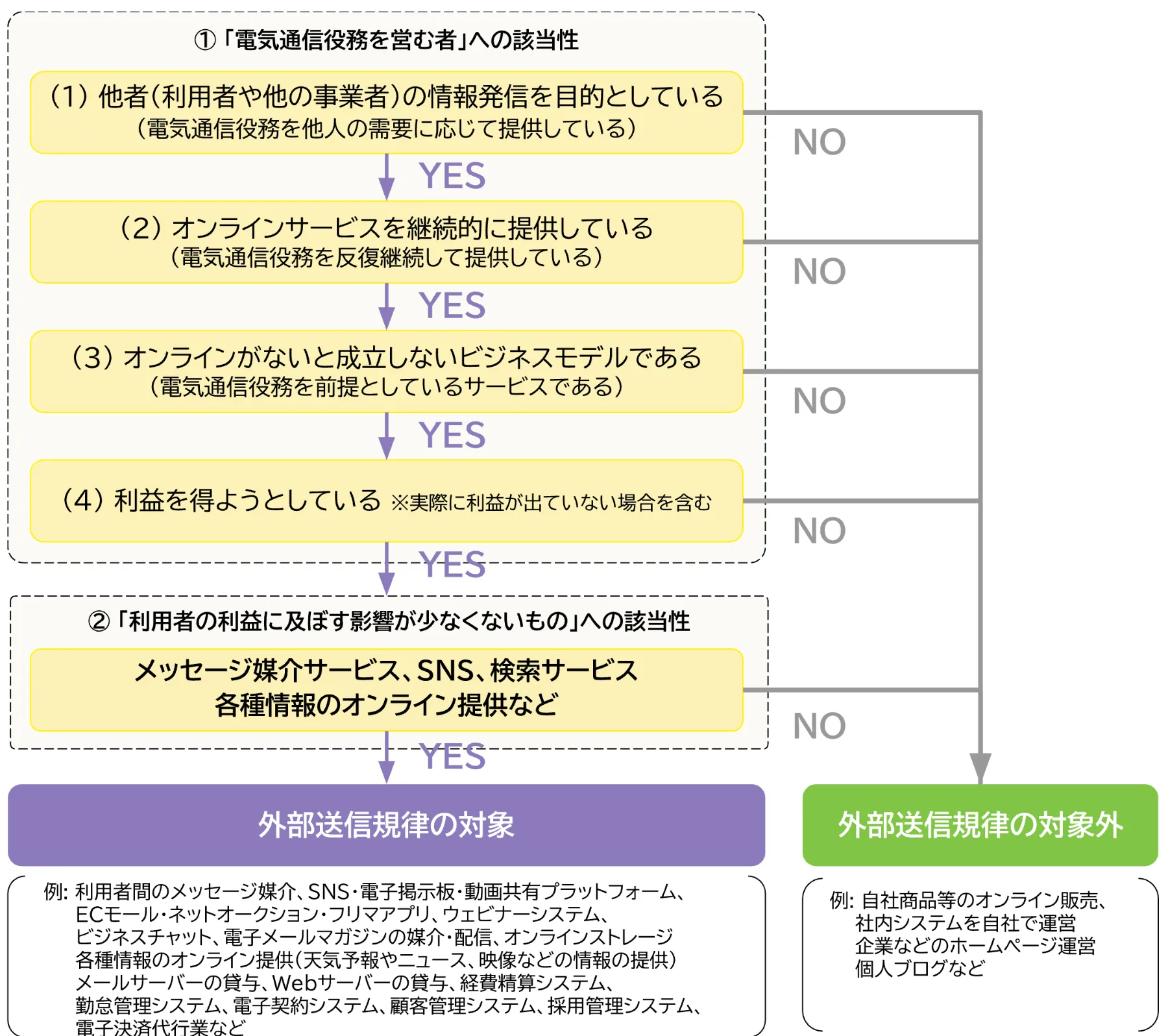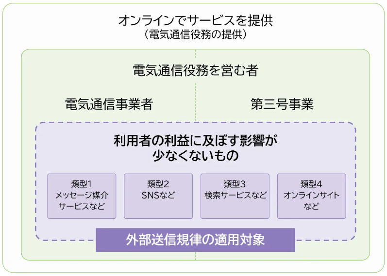 Webサイトやアプリを通してサービスを提供するほとんどの事業者が対象となり得る可能性が高いため、自社が該当するかどうか、確認が必要です。