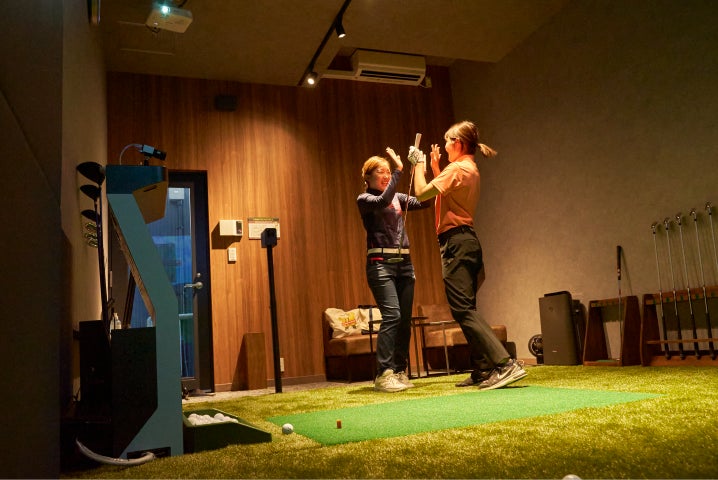 ご友人とのご同伴も追加料金なしで利用可能。一人で集中しての練習も友人とラウンドプレイで盛り上がることもできます。