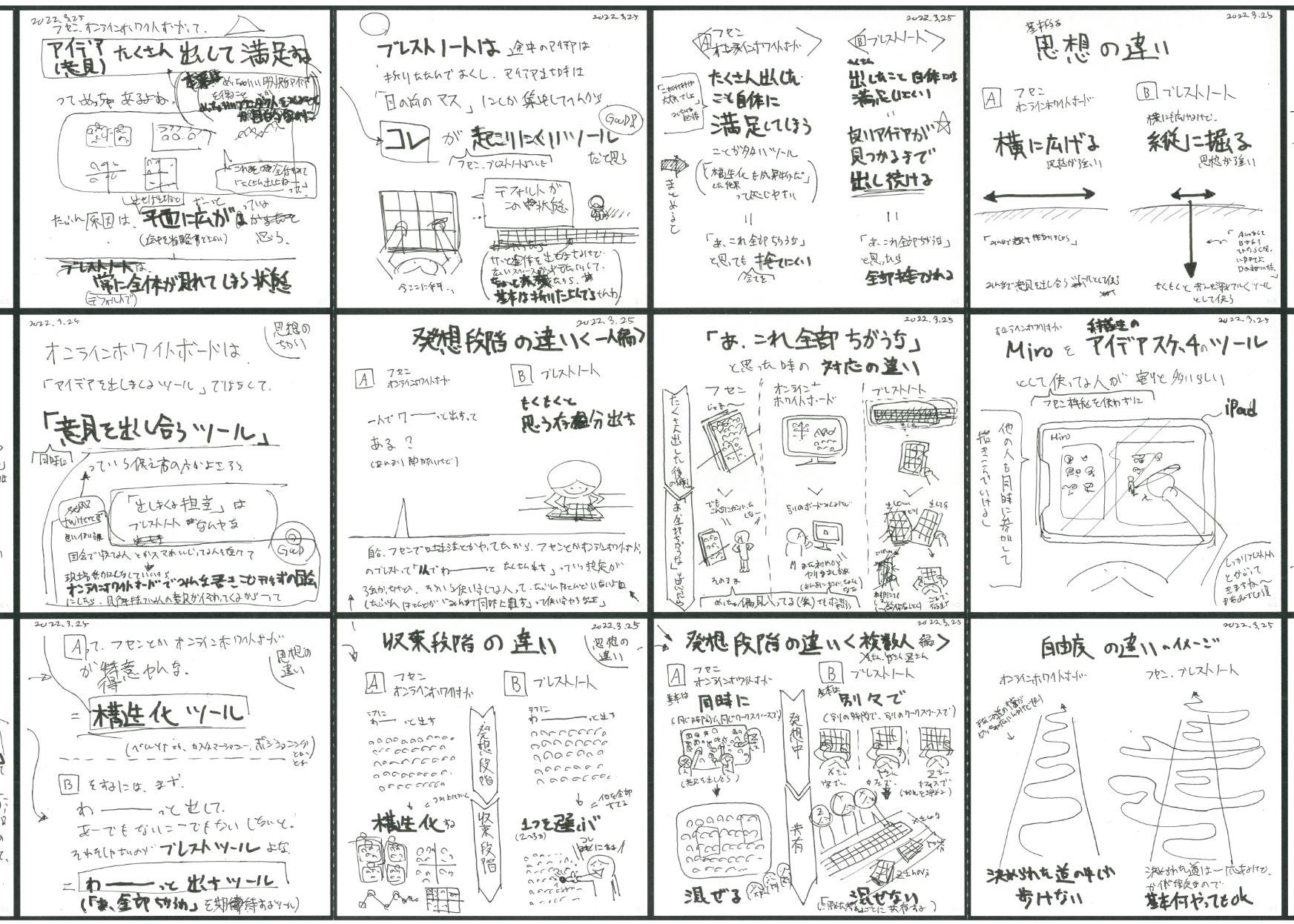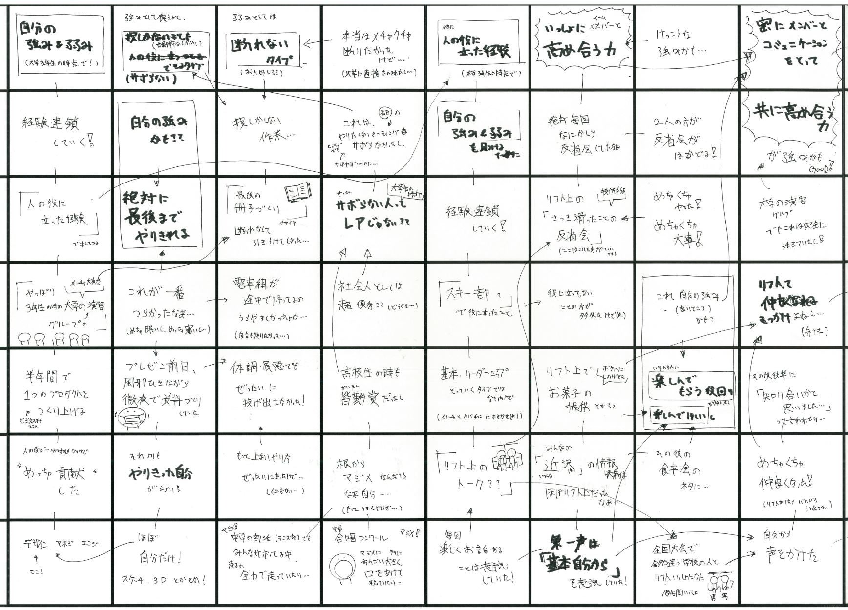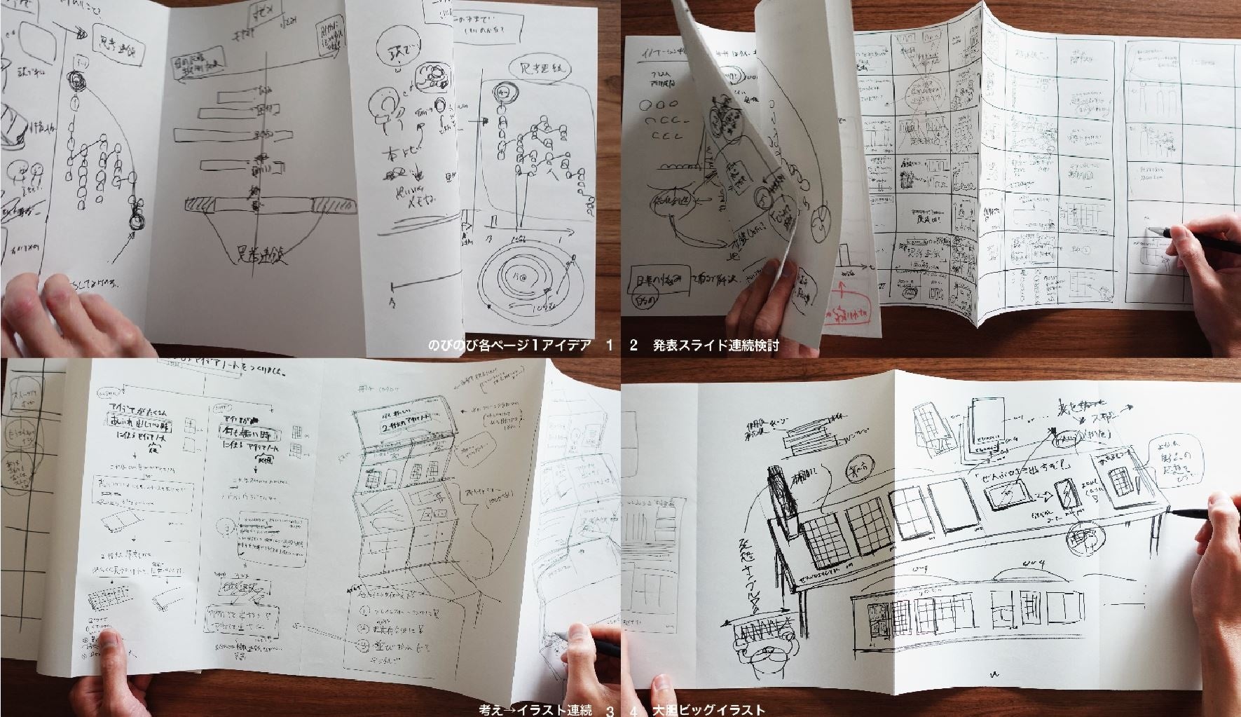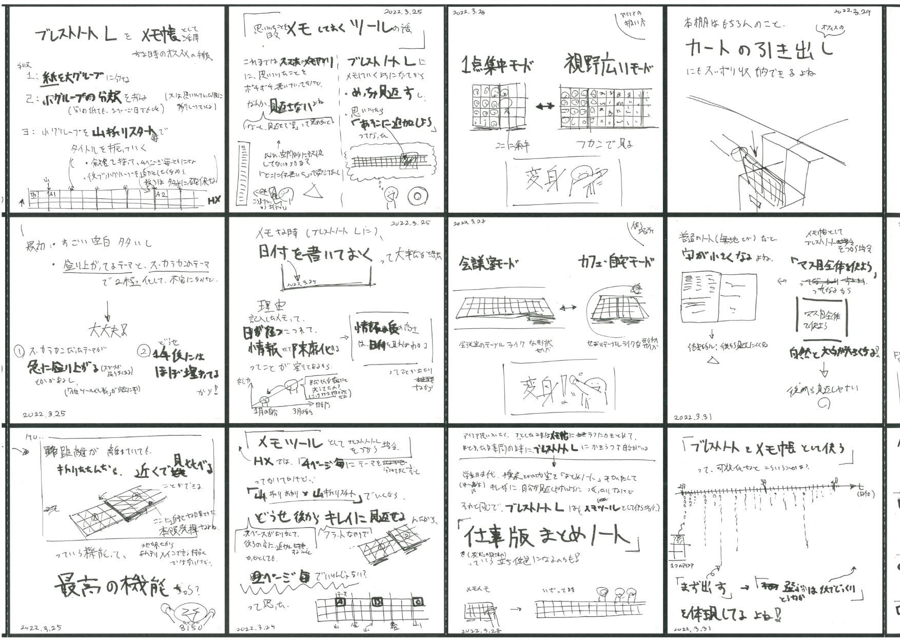 蛇腹の紙(思考を止めずに連続で吐き出し続けられる) × マス目(小分けに気軽に吐き出せる)