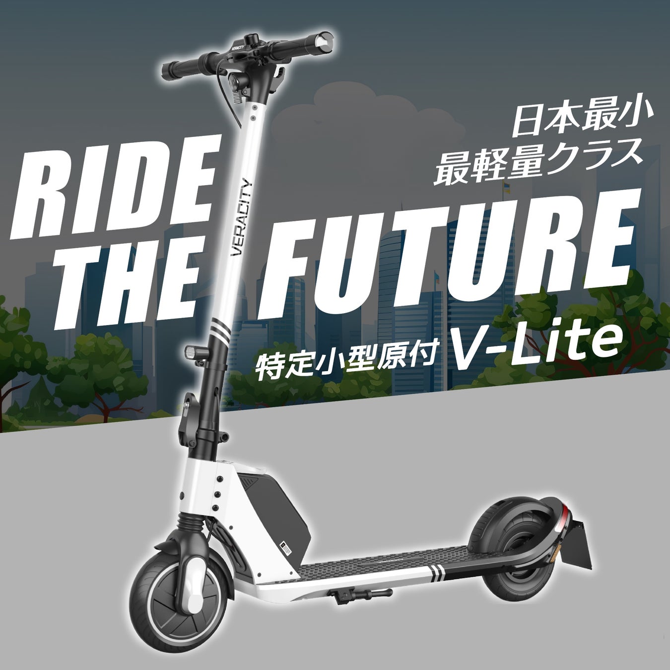 国内向けブランド「VERACITY」の新型モデル「V-Lite」は今年7月に法改正された特定小型原付に対応した日本最小/最軽量クラスで毎日のチョイ乗りに特化したデザイナーズ電動キックボードです。