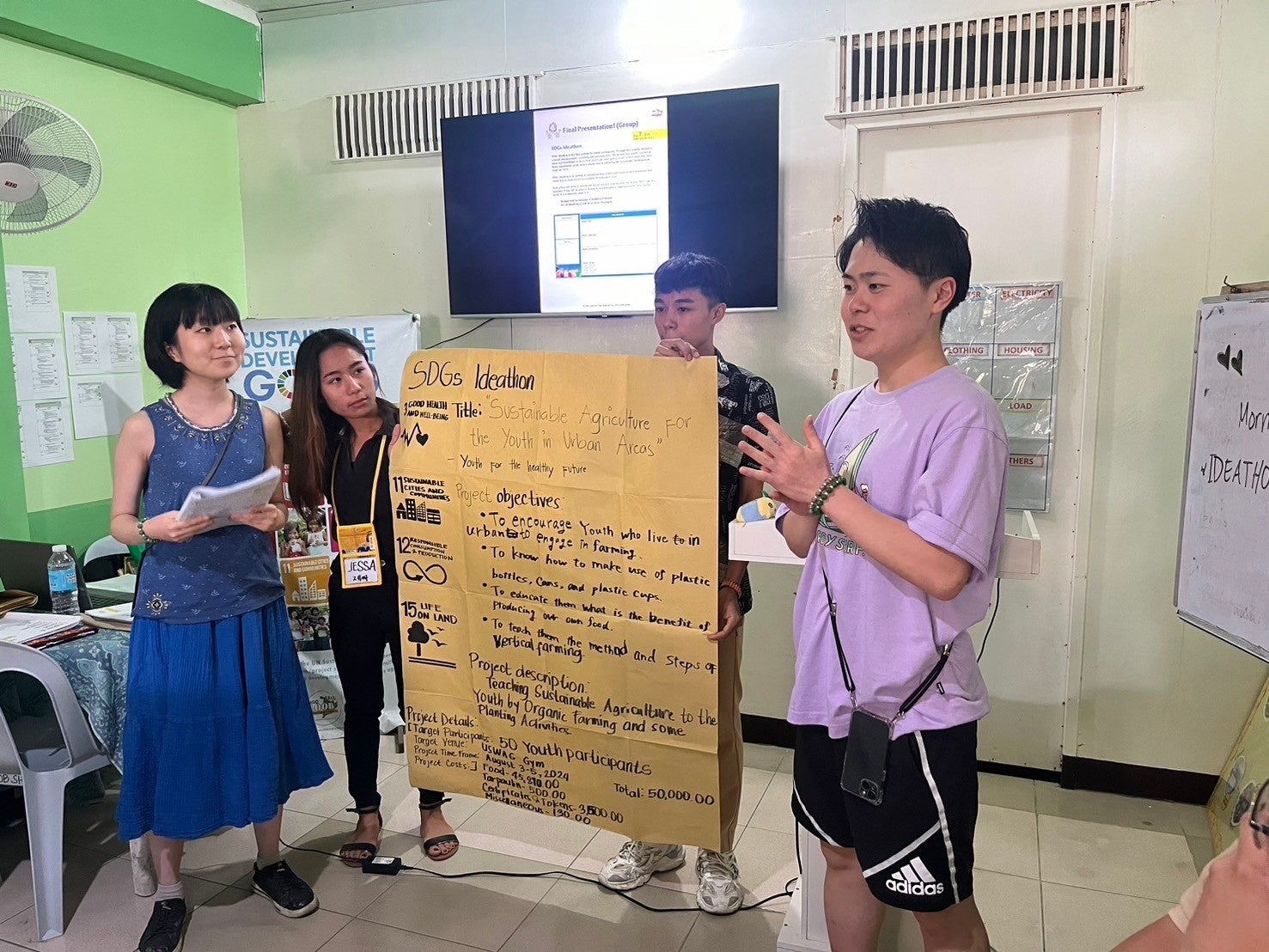 都市部に住むフィリピン人ユース層向けに、ベットボトルを再利用するバーティカルファーミングを普及するプロジェクトです。都会の若者に農業の楽しさや野菜接種の重要性、また身近なもので手軽にスタートできる農業技術を広めるのが目的としています。実際にフィリピン研修を通して、野菜の入った料理が少ないことや若者のスマホ中毒という問題に直面し、このプロジェクトを企画しました。本プログラムに参加した、イロイロ科学技術大学の農業学部の学生が自らバーティカルファーミングを指導することも評価されました。