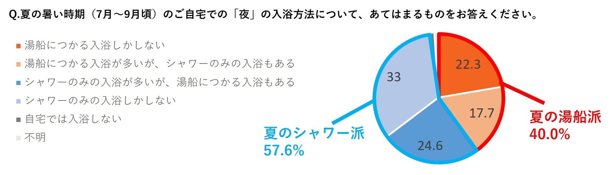 一方で、「夏場に湯船に浸かる人は40.0%」と半数以下という実態も。