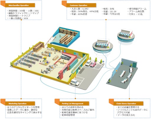 - 顧客管理:顧客トラフィック等を正確に把握し、顧客分析を行うことができます。
