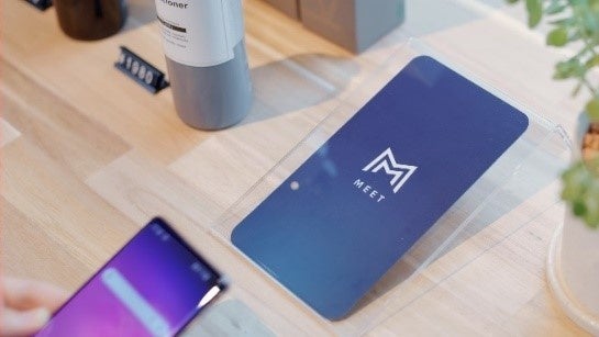「MEET」は、ミート株式会社が独自開発したNFC(近距離無線通信)を活用したコミュニケーションサービスです。スマートフォンをMEETにかざすことでWEBサイトやアプリなどのコンテンツに一瞬でアクセスすることができます。そのため、顧客体験におけるオフラインからオンラインに切り替わるようなシーンにおいてとりわけ力を発揮します。