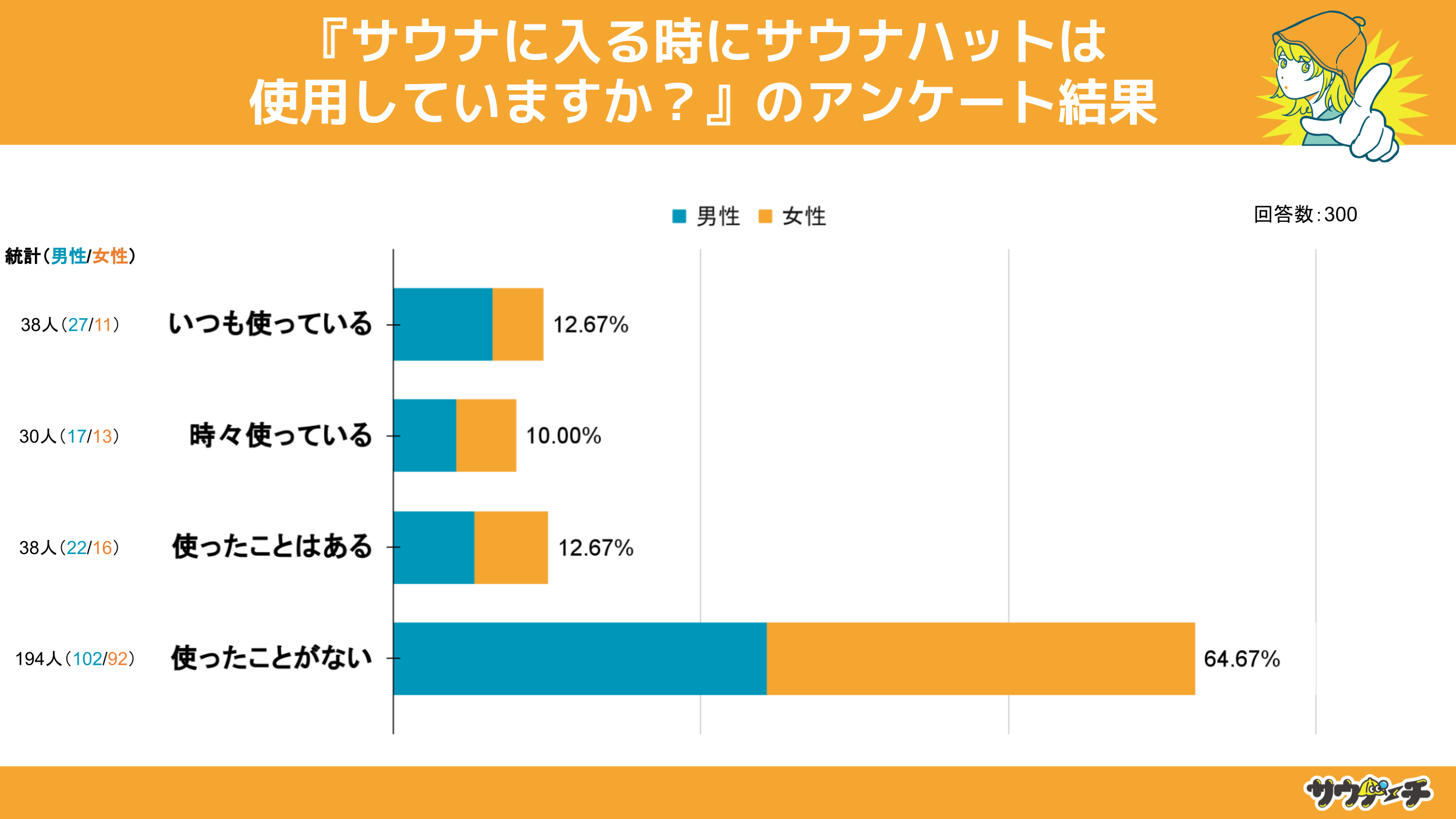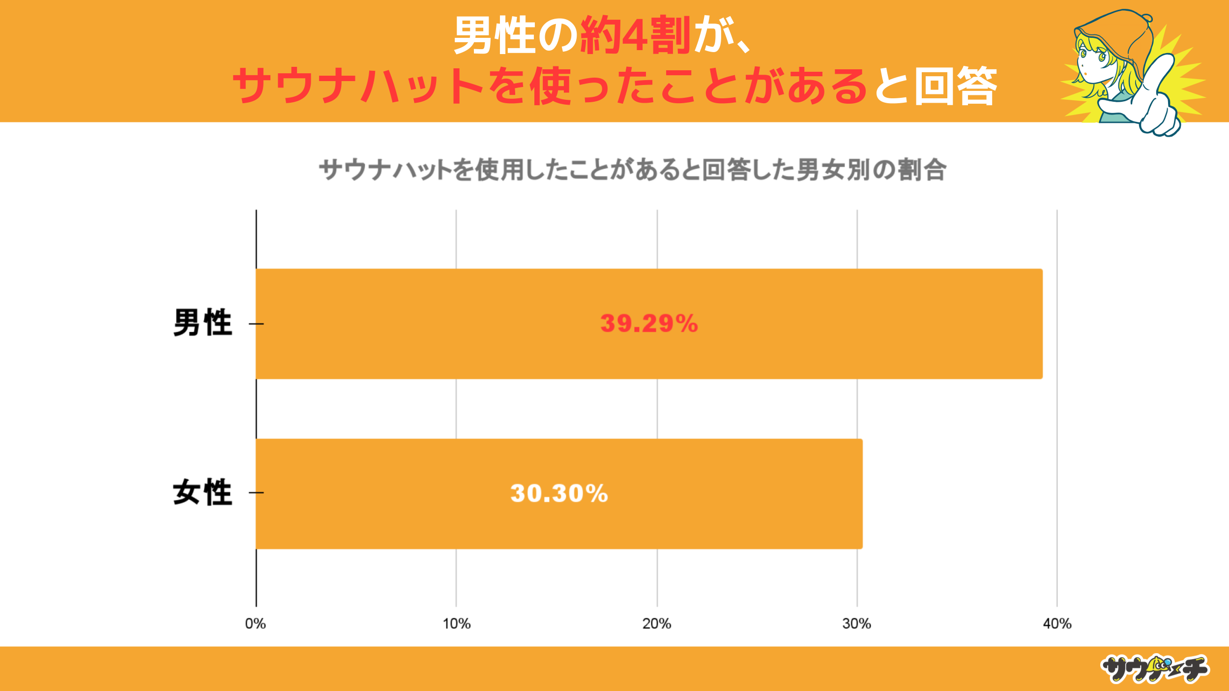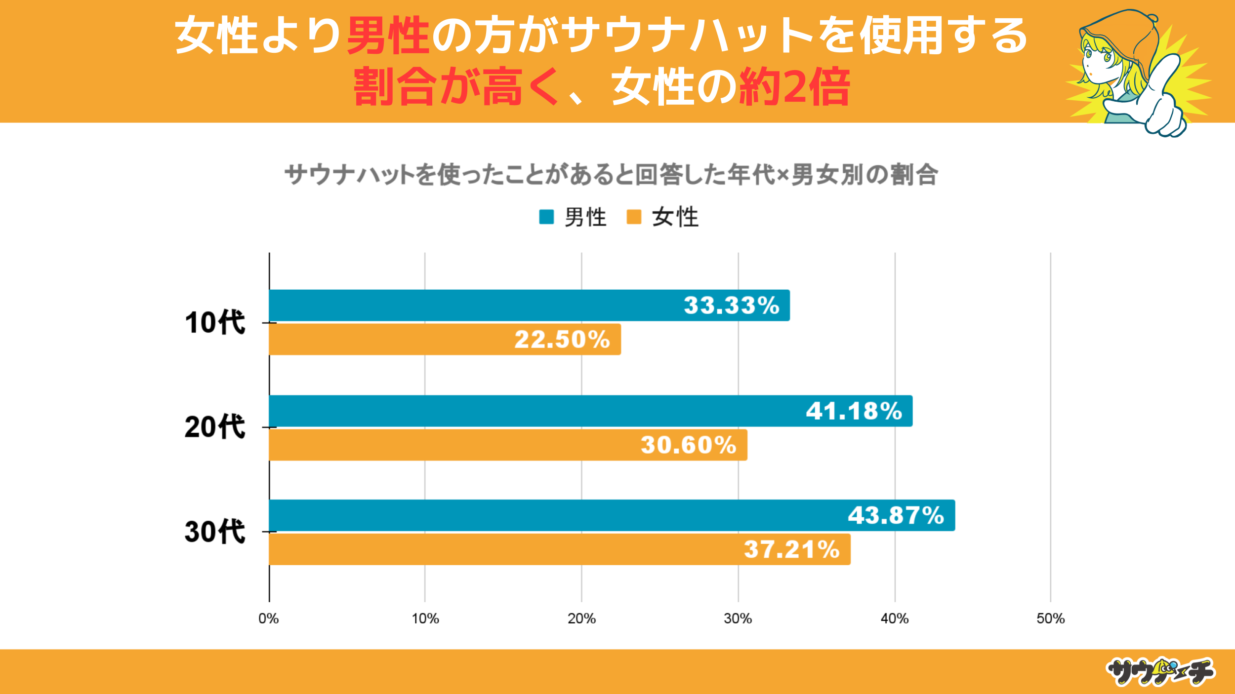 【女性より男性の方がサウナハットを使用する割合が高く、女性の約2倍】